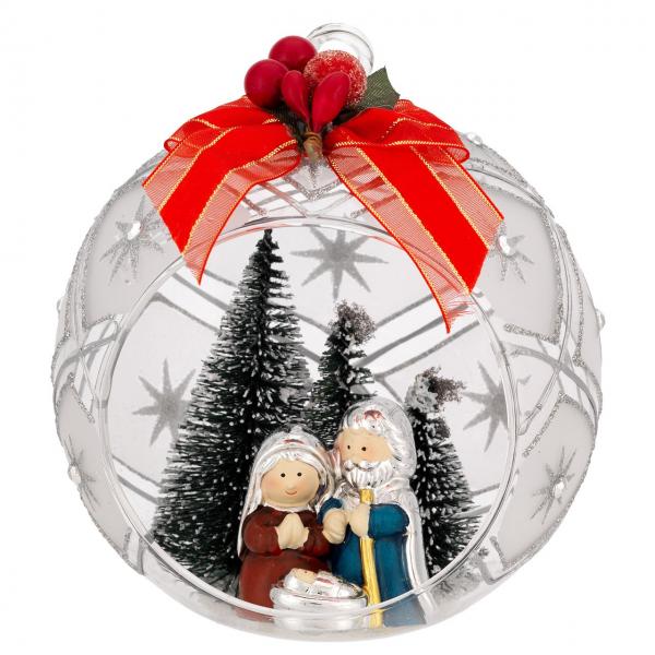 SFERA APERTA DECO ARGENTO D. 120 CON ALBERELLI E PRESEPE H. 55