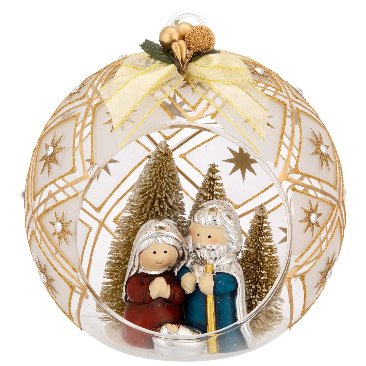 SFERA APERTA DECO ORO D. 150 CON ALBERELLI E PRESEPE H. 75