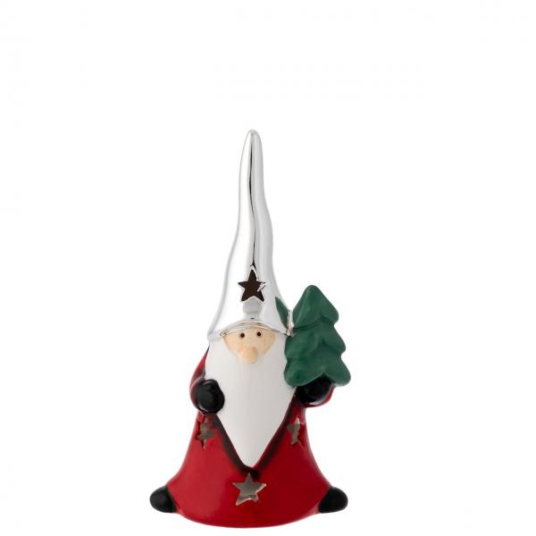 BABBO NATALE CON LED H. 13 ROSSO con cappello argento