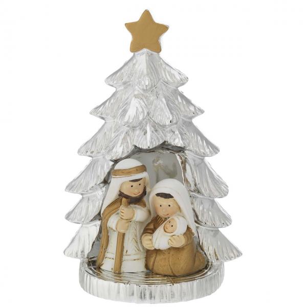 ALBERO ARGENTATO H. 12,5 CON MINIPRESEPE H. 5