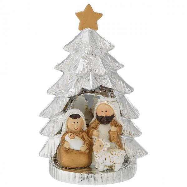 ALBERO ARGENTATO H. 12,5 CON MINIPRESEPE H. 5