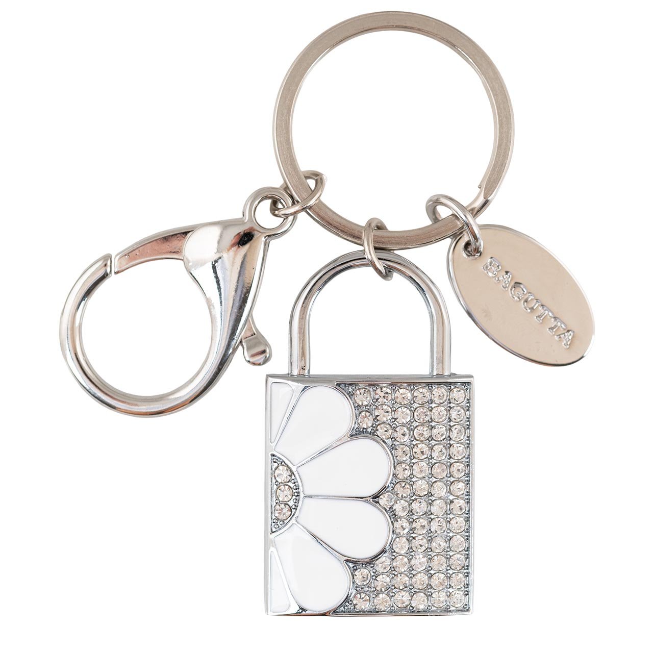 LUCCHETTO PORTACHIAVI USB CON FIORE BIANCO DECORATO CON CRISTALLI