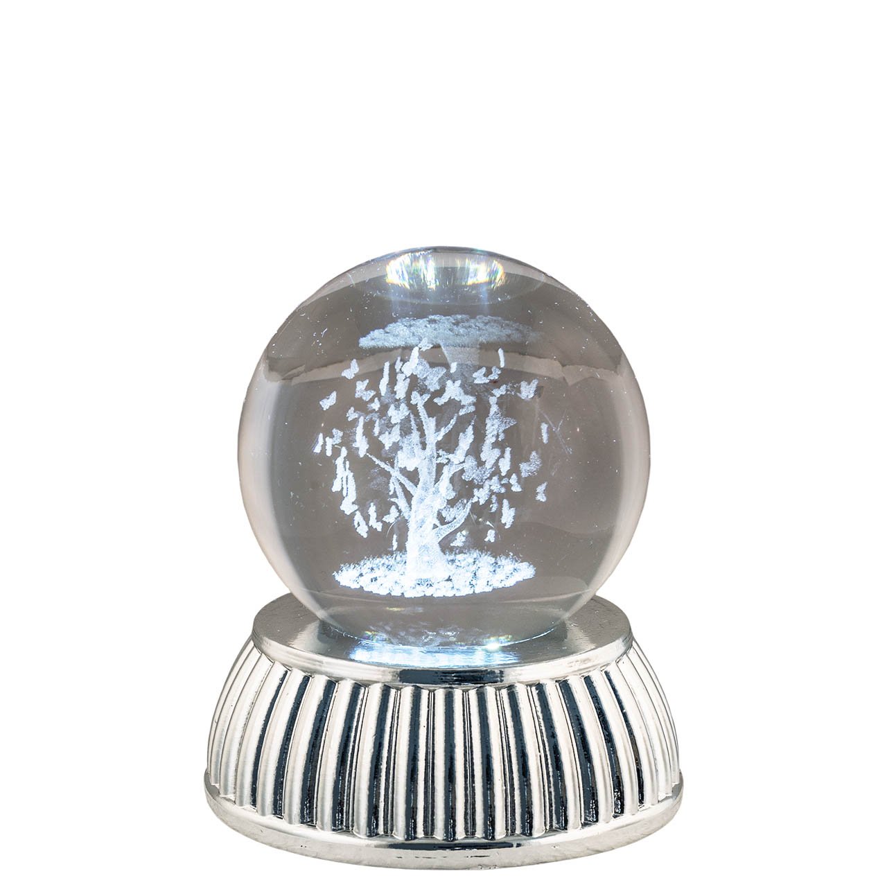 SFERA DIAM. 6 IN CRISTALLO SU BASE CON LED - ALBERO CON FARFALLE