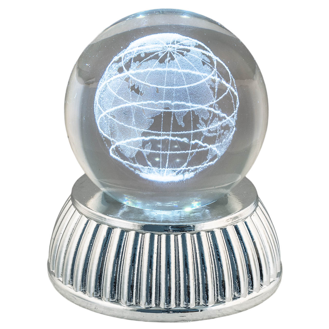 SFERA DIAM. 8 IN CRISTALLO SU BASE CON LED - GLOBO TERRESTRE