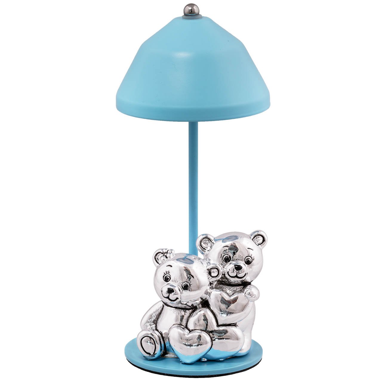 LAMPADA CON CARICA USB E COPPIA DI ORSETTI CON CUORE - AZZURRA