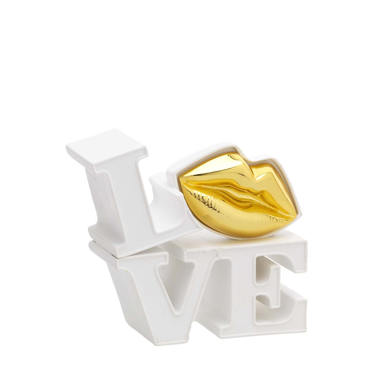 La scultura Love Bagutta piccola con bocca oro racchiude in un formato compatto tutto il fascino di un oggetto decorativo elegante e romantico. Il dettaglio oro dona calore e luminosità alla composizione, rendendola perfetta per valorizzare con stile piccoli spazi e angoli d'arredo.