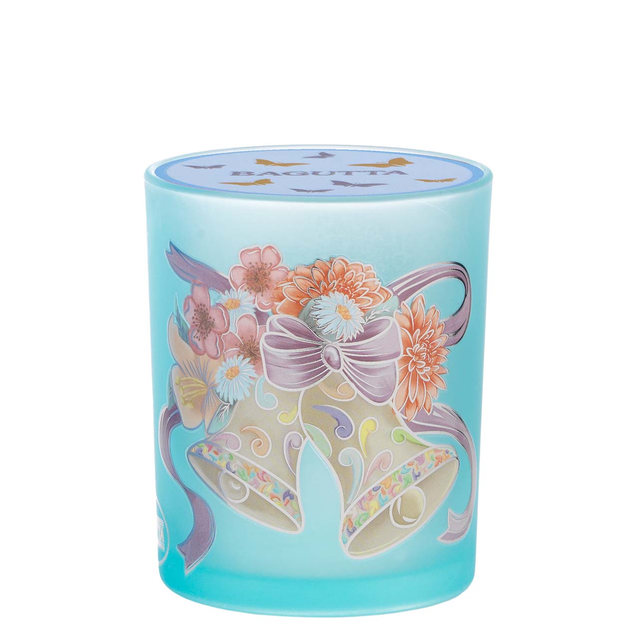 BICCHIERE CON TEA LIGHT 7,5X10,5CM - CAMPANELLE AZZURRO