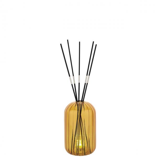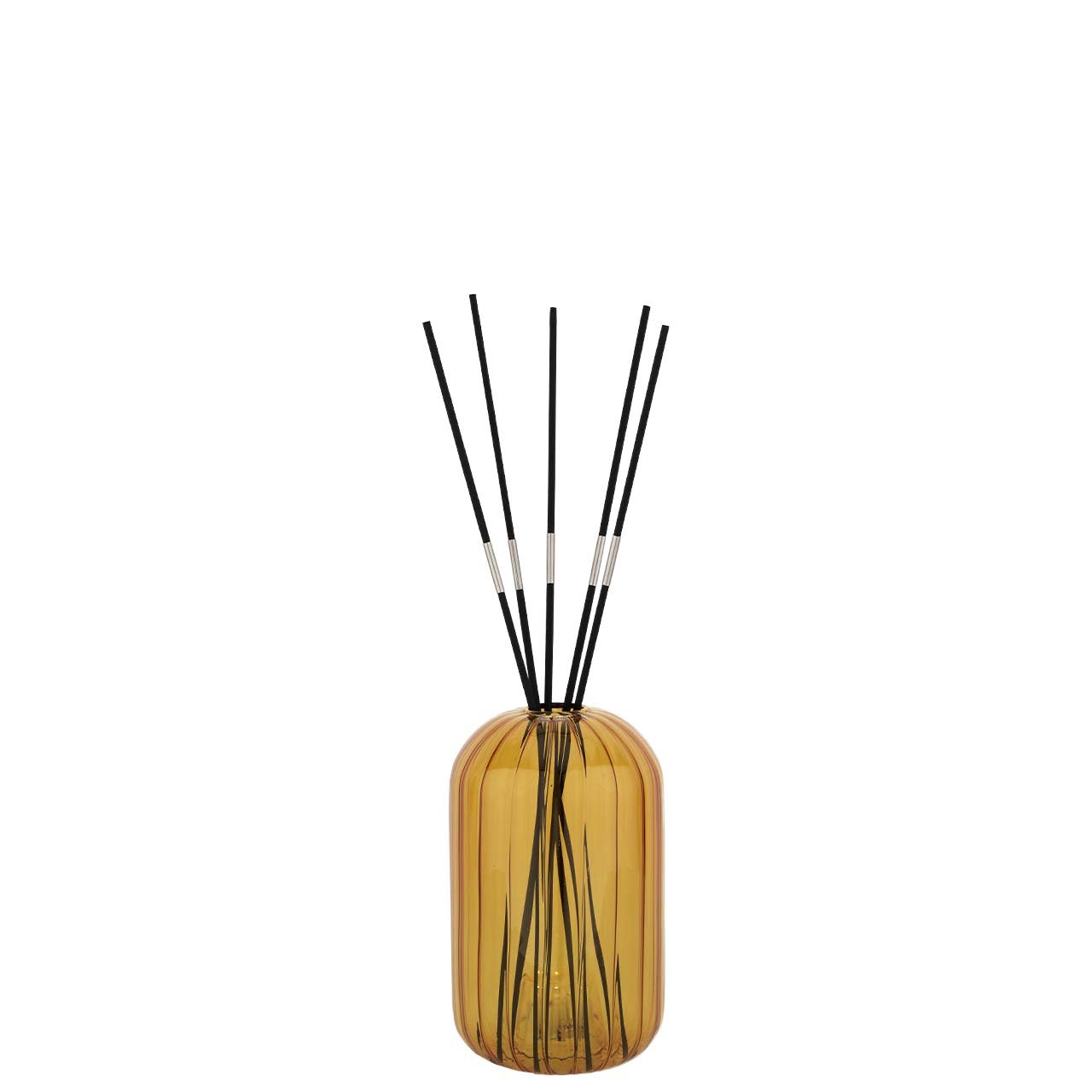 Il diffusore per ambiente Bagutta in vetro colorato nasce per unire funzione olfattiva e presenza decorativa all'interno degli spazi domestici o professionali. Il vasetto in vetro senape accoglie i bastoncini diffusori permettendo alla fragranza di propagarsi lentamente nell'ambiente, creando una percezione di ordine, pulizia e atmosfera accogliente. Le proporzioni del contenitore, nella dimensione 8,5 x 14 cm, lo rendono facile da posizionare su mensole, tavolini o mobili d'ingresso mantenendo una presenza estetica elegante e discreta.