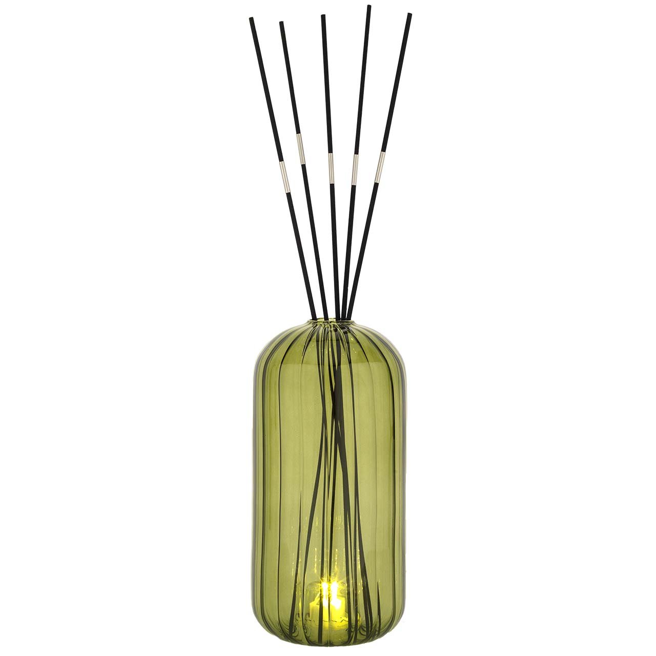 VASO IN VETRO DECORATIVO: Il contenitore in vetro colorato verde valorizza il diffusore trasformandolo in un piccolo elemento d'arredo adatto a diversi stili di ambiente