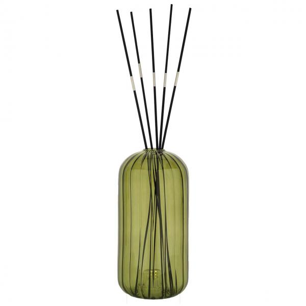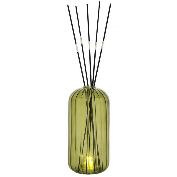 VASO IN VETRO DECORATIVO: Il contenitore in vetro colorato verde valorizza il diffusore trasformandolo in un piccolo elemento d'arredo adatto a diversi stili di ambiente