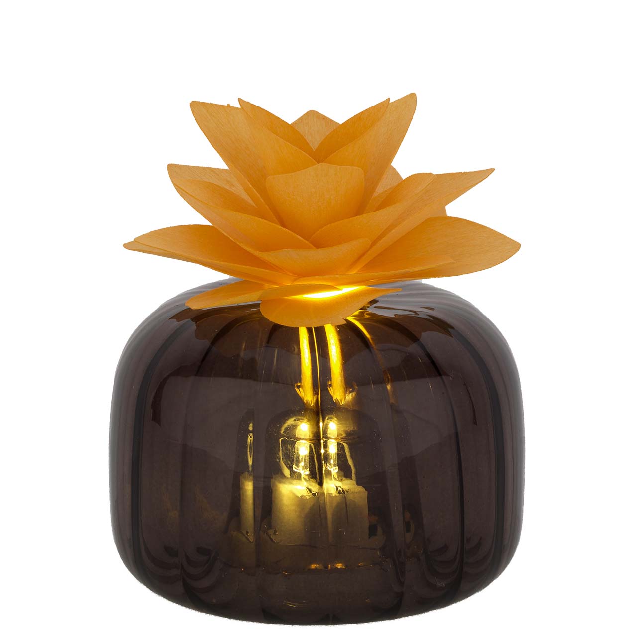 Presentazione del prodotto: L'insieme tra vetro, LED e fiore diffusore comunica una percezione di qualit? ordinata, sobria e decorativamente coerente.