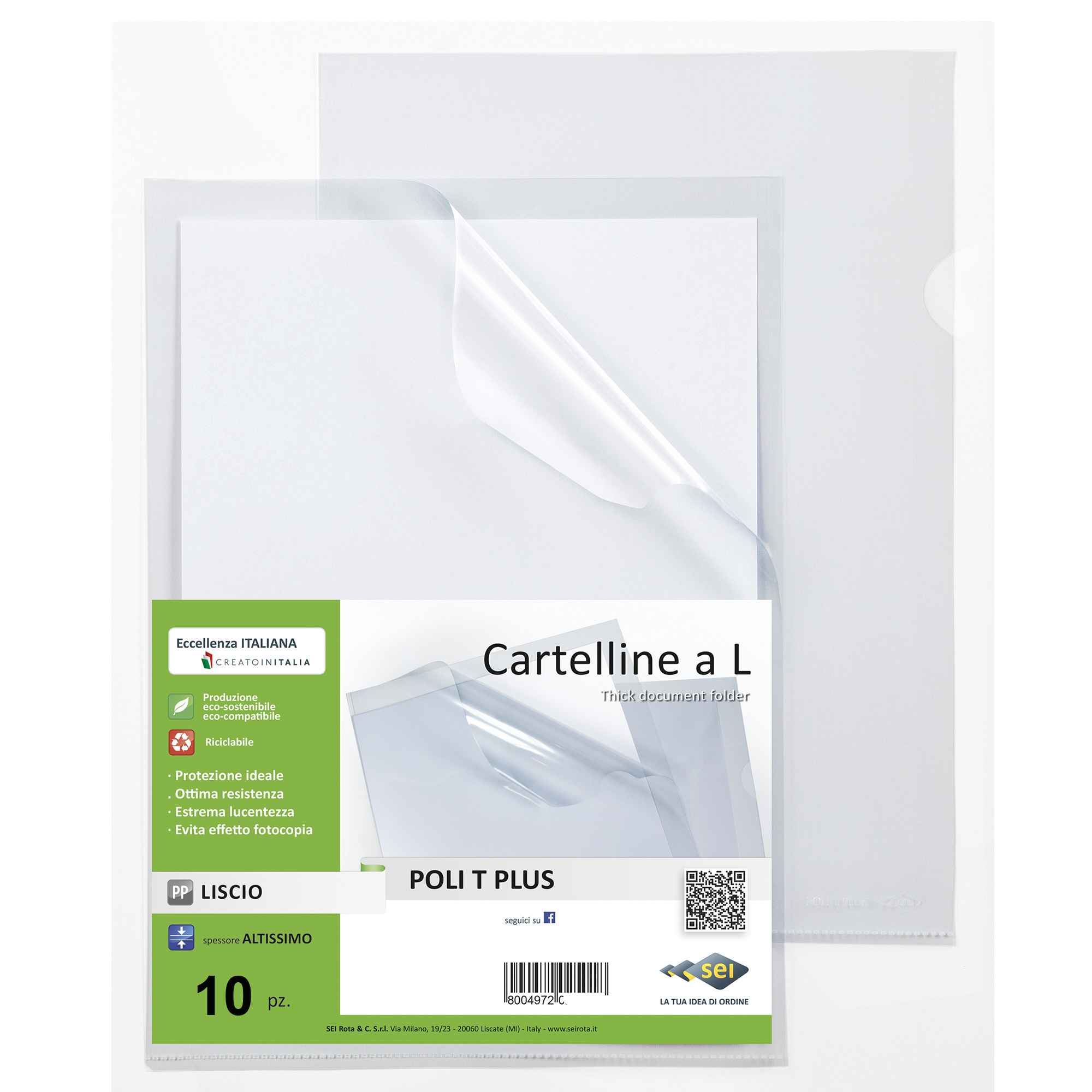 10 Cartelline a L in PP trasparente alto spessore 30x42cm Poli T Plus Sei rota