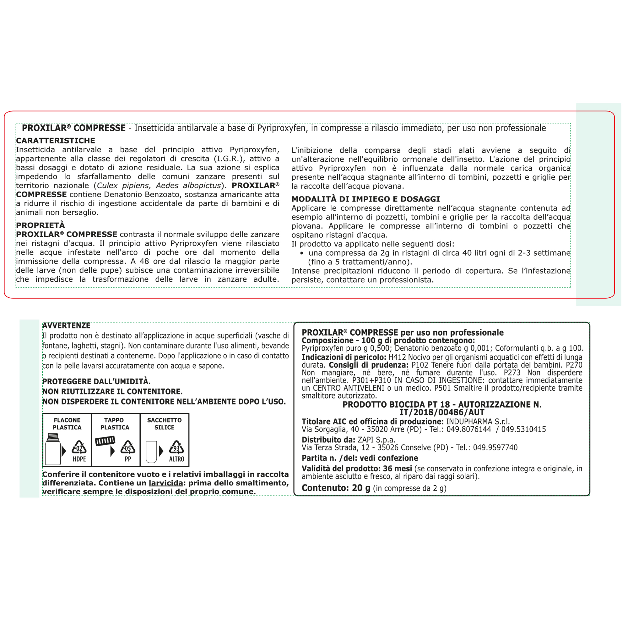10 compresse insetticida per larve di zanzara in barattolo Protemax