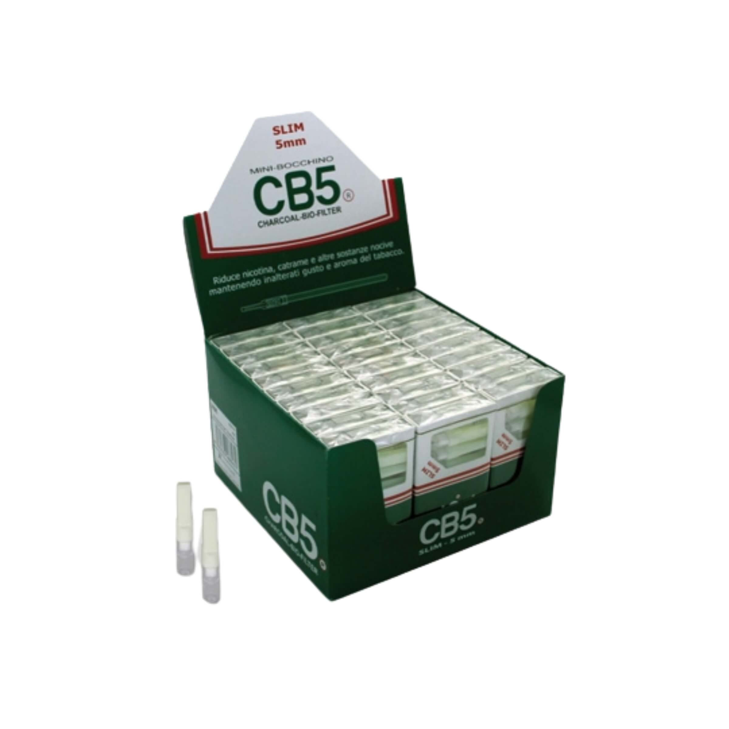 I Mini Bocchini CB5 da 5 mm con carboni attivi BIO-CHARCOAL rappresentano una soluzione pratica e innovativa per migliorare sensibilmente l'esperienza del fumo, con particolare attenzione al benessere e alla qualità. Questi bocchini, studiati appositamente per sigarette di tipo SLIM, uniscono efficace tecnologia avanzata e attenzione ai dettagli, offrendo un comfort superiore e un significativo miglioramento nella filtrazione delle sostanze nocive.• Filtrazione con carboni attivi BIO-CHARCOAL: grazie alla presenza di carboni attivi di altissima qualità, i mini bocchini CB5 garantiscono un'eccellente riduzione di nicotina, catrame e delle principali sostanze nocive presenti nel fumo di sigaretta, mantenendo al contempo intatti il ??gusto e l'aroma del tabacco. Un risultato di grande efficacia, favorendo i fumatori più esigenti che cercano una fumata più pulita e piacevole.• Formato Slim da 5 mm: ideali per le sigarette formato slim, questi bocchini sono compatti, discreti e perfettamente compatibili con le sigarette più sottili. La lunghezza ridotta di circa 3,5 cm garantisce comodità di utilizzo, maneggevolezza e una perfetta adattabilità ad ogni situazione.• Tecnologia BIO-CHARCOAL avanzata: l'impiego di carboni attivi naturali e biologici (Bio-Charcoal) rende questi mini bocchini una scelta superiore, in grado di assorbire in maniera efficace le impurità prodotte dalla combustione della sigaretta. Questo sistema avanzato assicura un'azione filtrante delicata ma estremamente efficace, per una fumata più piacevole e meno irritante.• Confezione pratica e compatta: ogni scatolina contiene 10 mini bocchini confezionati singolarmente, garantendo igiene e facilità d'uso in ogni occasione. La confezione, piccola e discreta, è perfetta da tenere in tasca o in borsa per averli sempre a disposizione.• Espositore completo da 30 scatoline: l'espositore completo contiene 30 scatoline, ideale per negozi e rivendite specializzate. La presentazione elegante e professionale facilita l'esposizione sul banco, attirando l'attenzione dei clienti grazie al design accattivante e informativo.I Mini Bocchini CB5 ai carboni attivi da 5 mm sono una scelta intelligente e consapevole per chi desidera fumare con un approccio più attento e responsabile, senza rinunciare al piacere autentico della sigaretta. Un prodotto di qualità superiore pensato per garantire la massima soddisfazione e benessere quotidiano.Dimensioni bocchino: lunghezza circa 3,5 cm.Scatolina da 10 pezzi. Espositore da 30 scatoline.