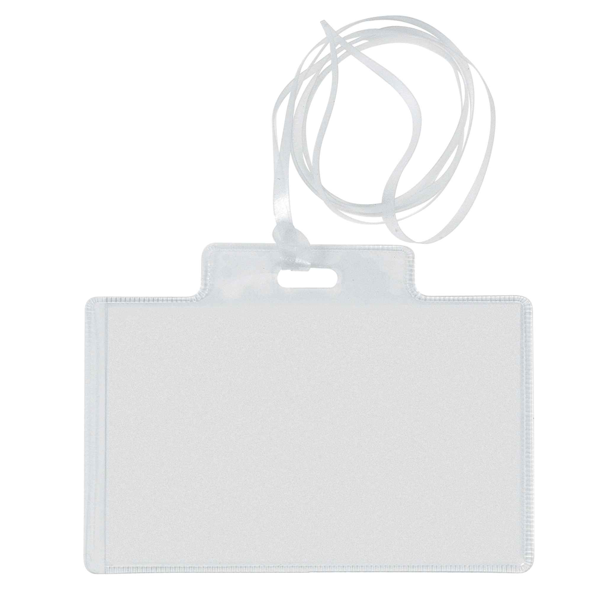 PORTA NOMI IN PVC TRASPARENTE, ALTO SPESSORE, COMPLETI DI CORDONCINI IN PLASTICA E CARTONCINI. I CORDONCINI SONO A NORME DI SICUREZZA ANTI SOFFOCAMENTO. ADATTI A CONGRESSI, RIUNIONI, VISITE GUIDATE. INSERIMENTO DEL CARTONCINO DAL LATO CORTO. FORMATO 95X60MM.