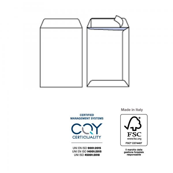 100 buste sacco COMPETITOR FSC bianca strip adesivo 190x260mm 80gr Pigna