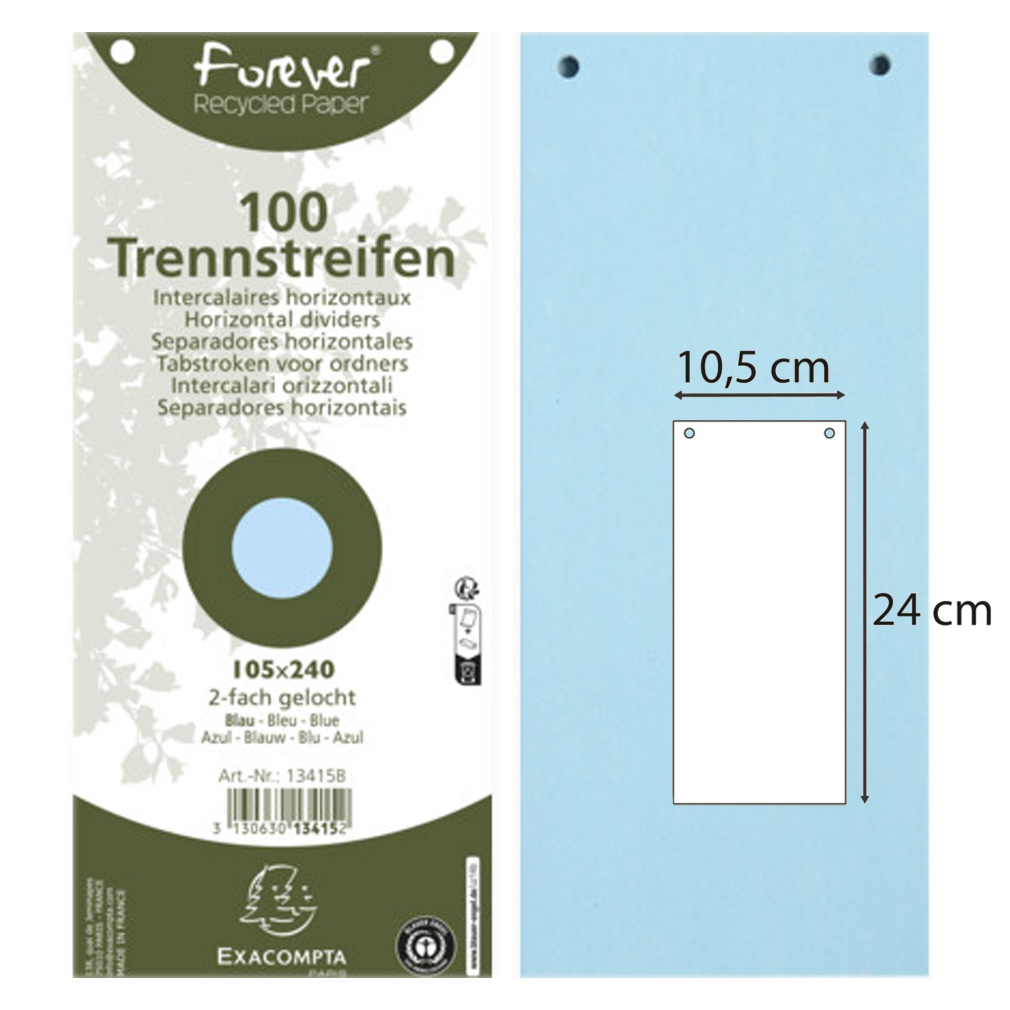 Conf.100 Divisori orizz. riciclati 105x240mm forati azzuro13415B Exacompta