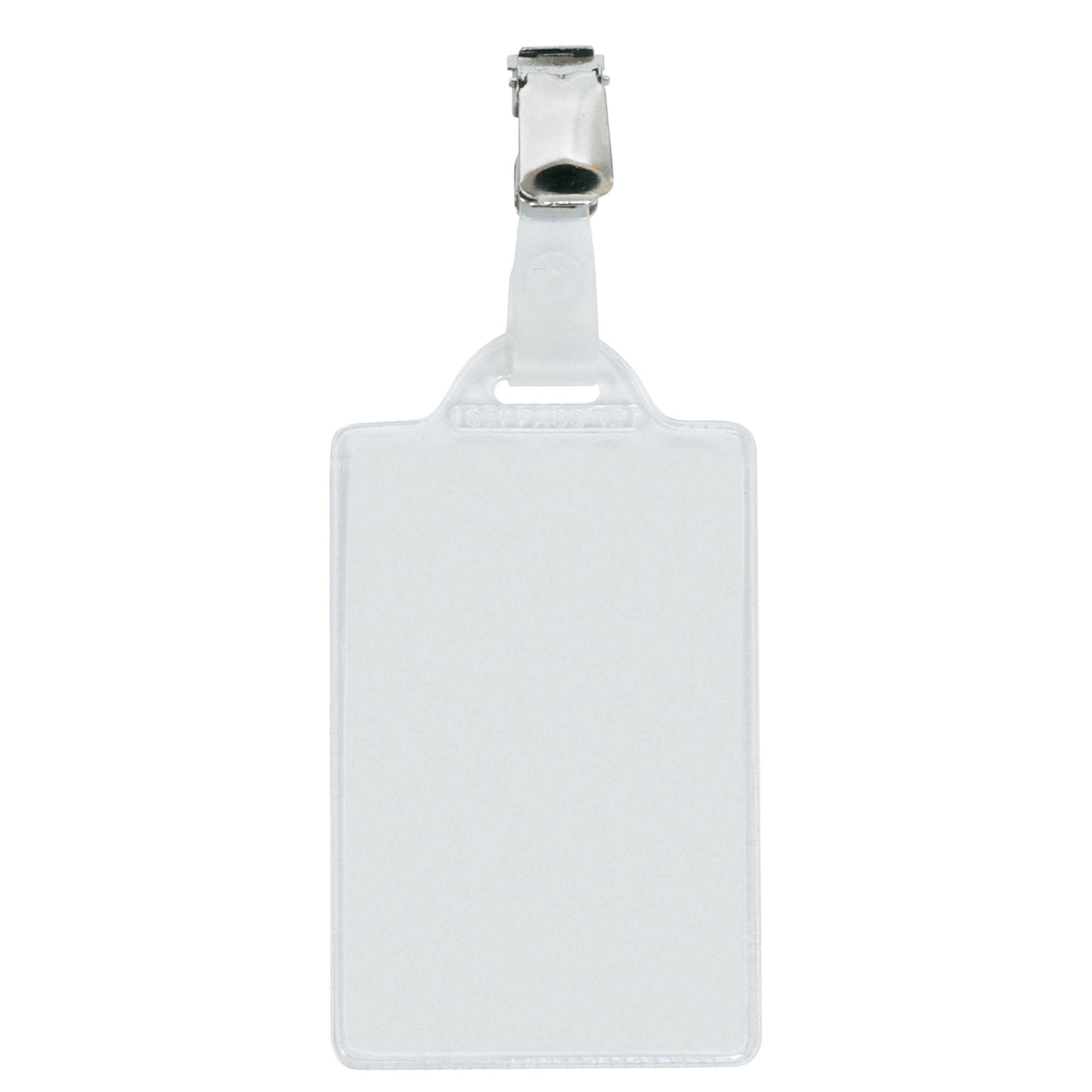 PORTA NOMI IN PVC TRASPARENTE, ALTO SPESSORE, COMPLETI DI PINZETTE IN METALLO E CARTONCINO (INSERIMENTO LATO CORTO) ADATTI A CONGRESSI, RIUNIONI, VISITE GUIDATE. FORMATO CONTENUTO 55X85MM.
