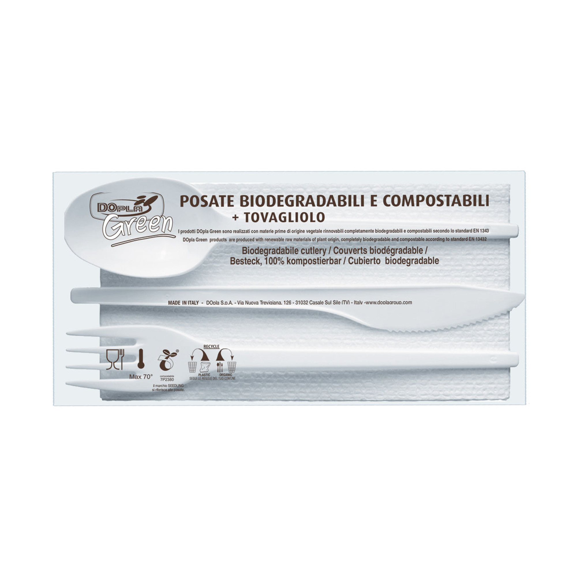 100 Tris Posate in Estabio con tovagliolo 2v Dopla Green art. 03908