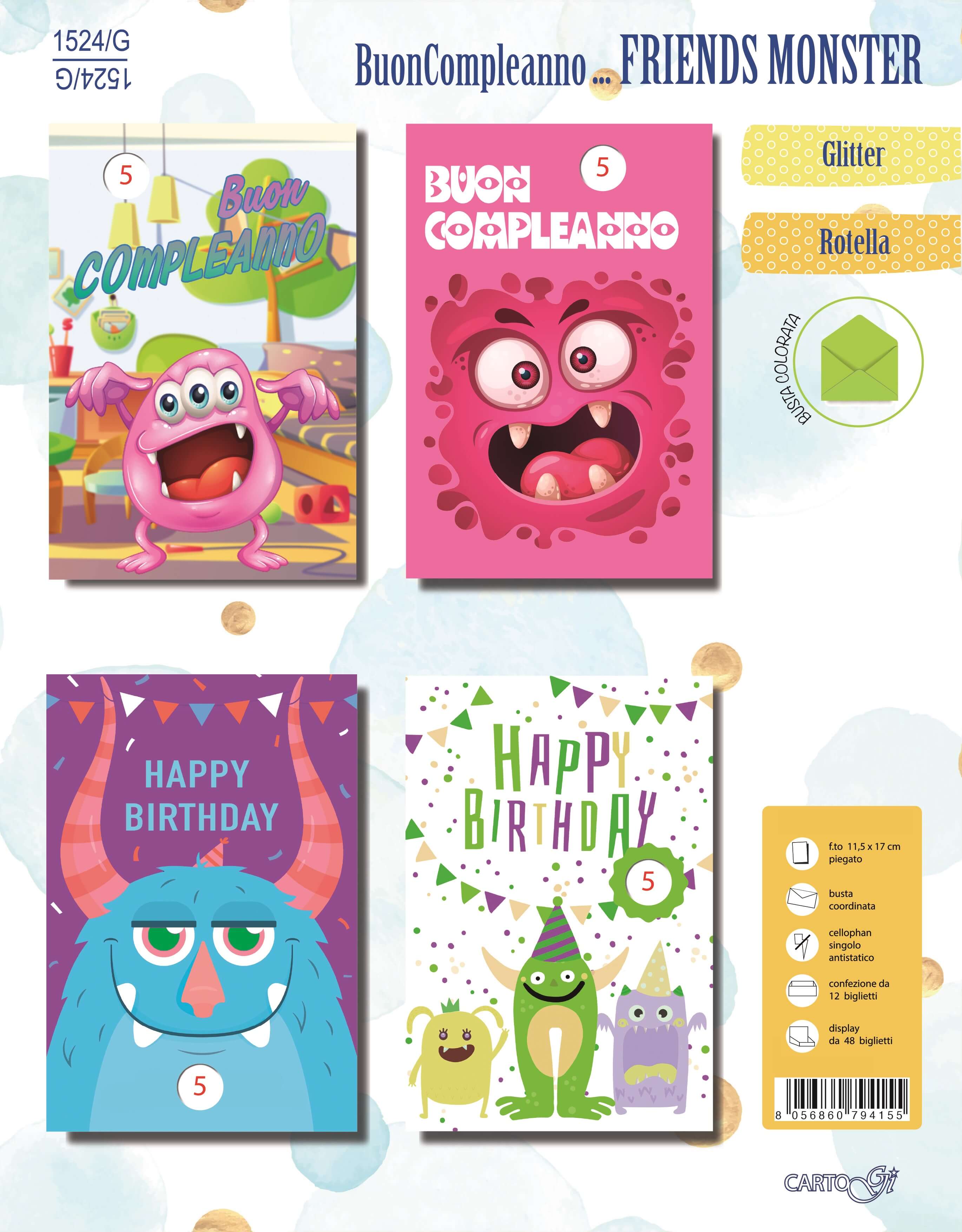 1524/G - BUON COMPLEANNO FRIENDS MONSTER CON ROTELLA (12PZ)