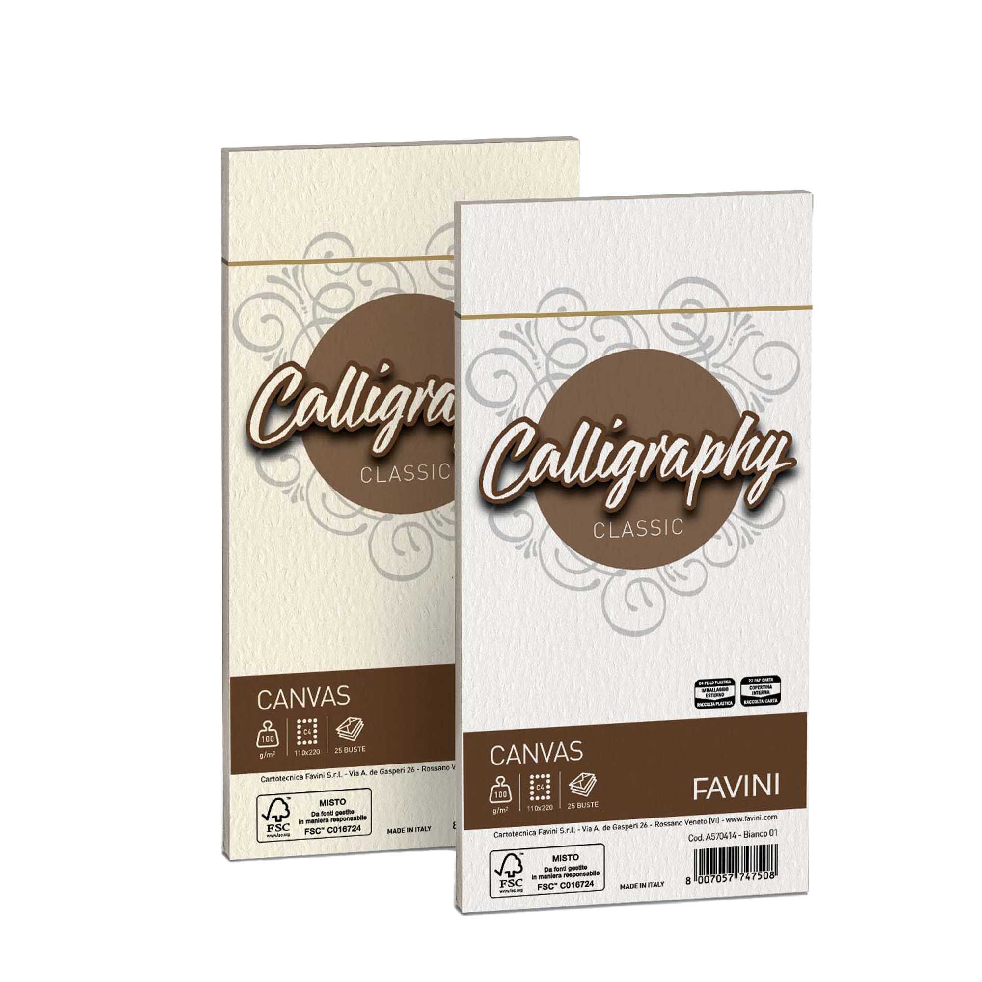 25 BUSTE CALLIGRAPHY CANVAS 110X220MM 100GR 01 BIANCO