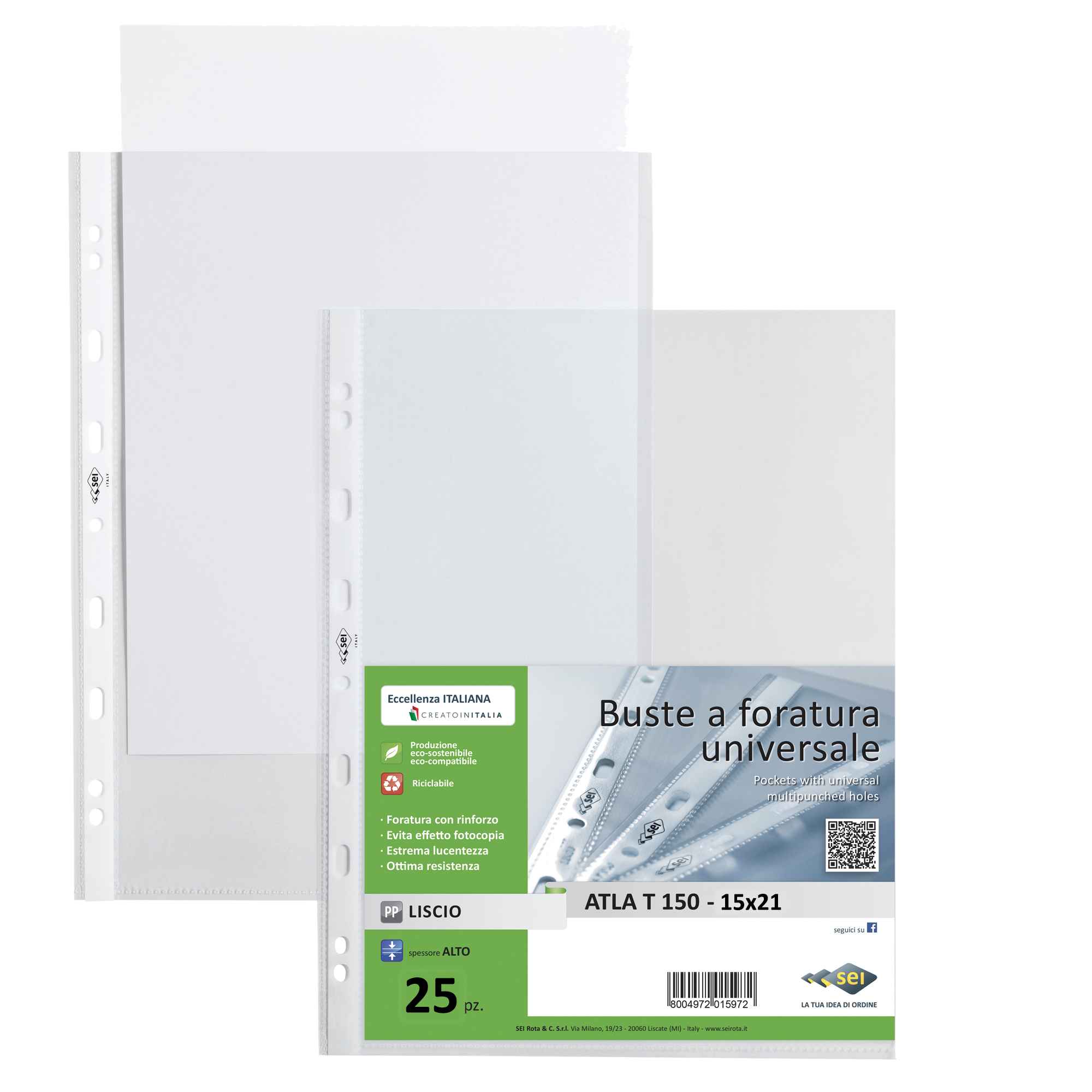 25 buste forate ATLA T 150 15x21cm liscio SEI ROTA