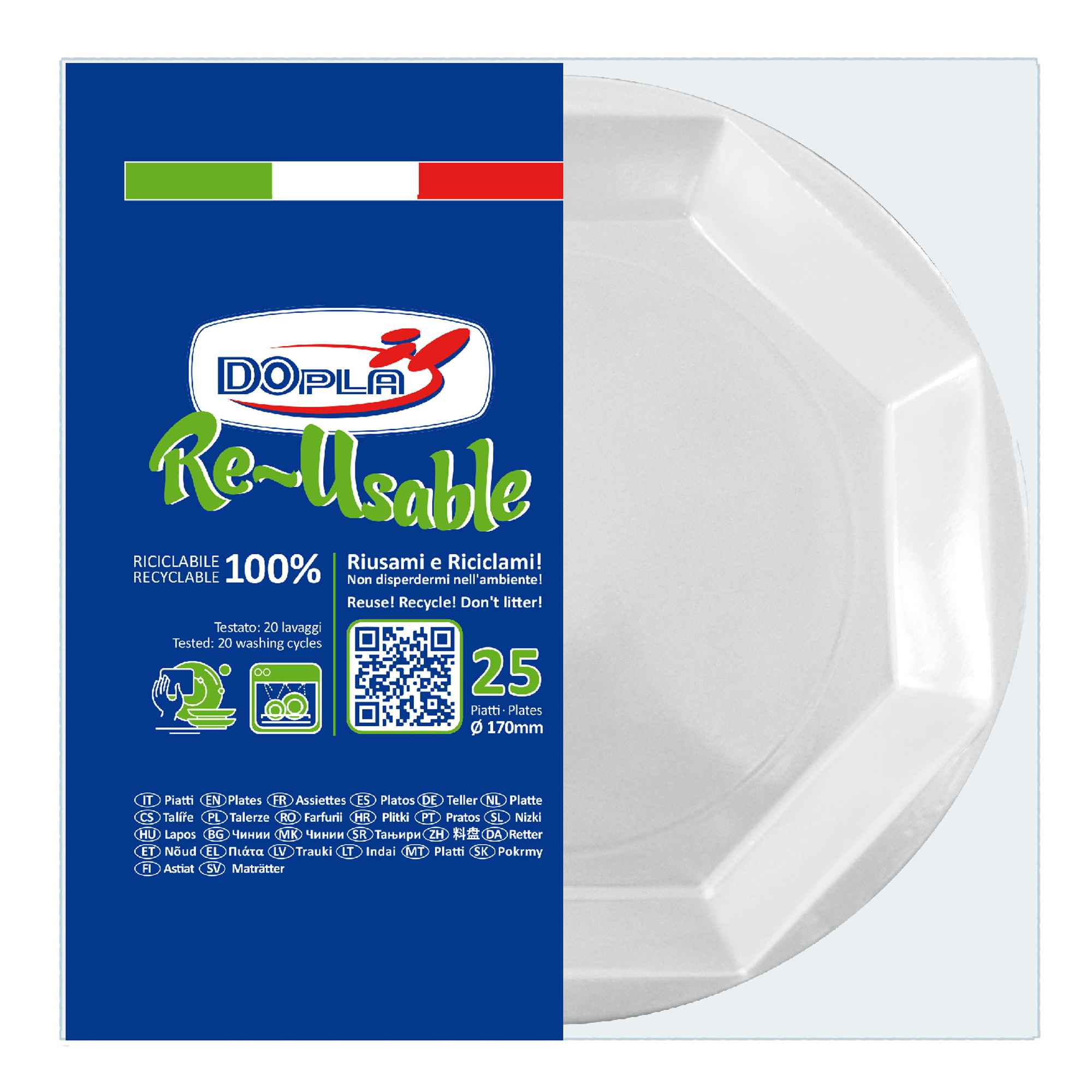 25 Piatti da frutta D170mm in PS Reuse bianco Dopla