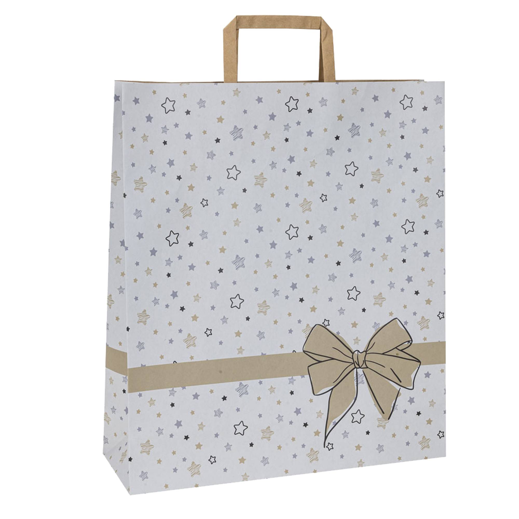 25 shopper natale carta c/maniglie piattina 36x12x41cm stars bianco