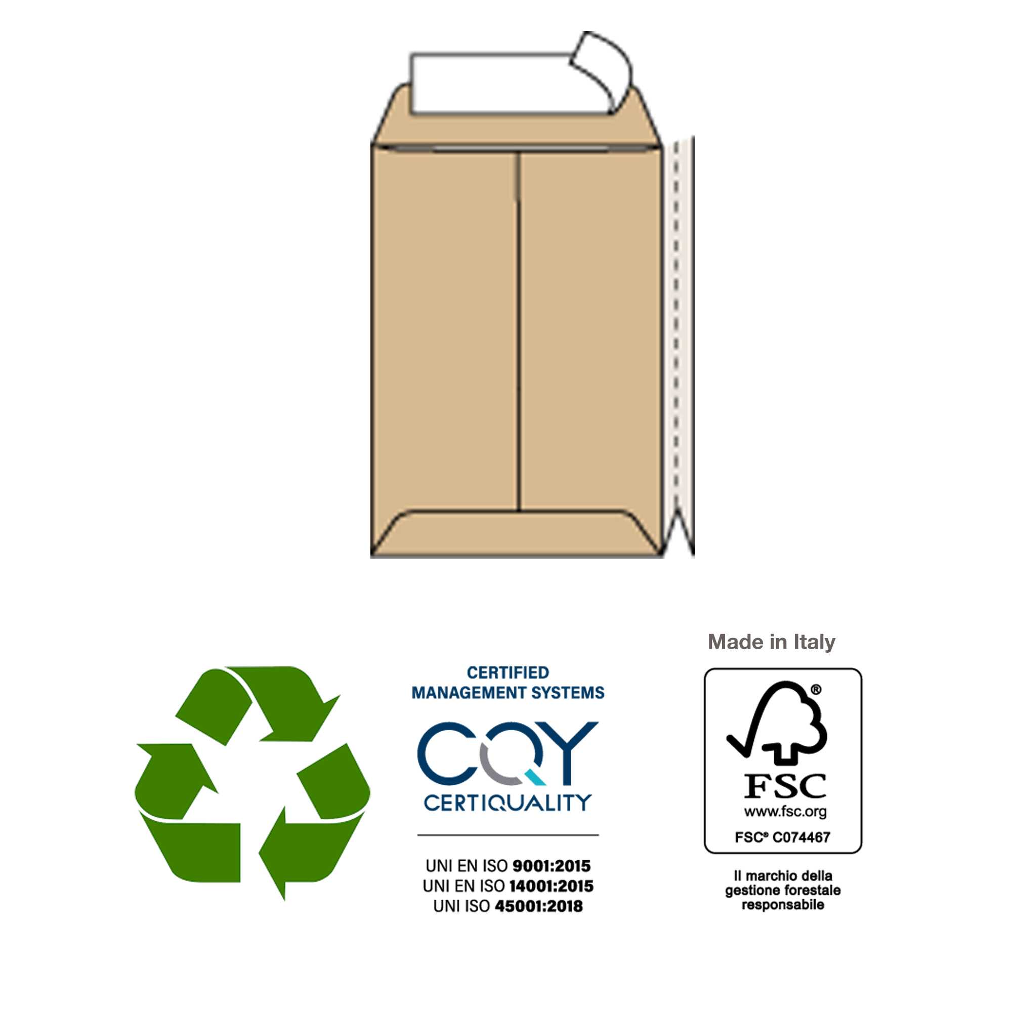 250 buste sacco MULTI STRIP LARGE avana carta ric. 300x400x40mm 120gr Pigna