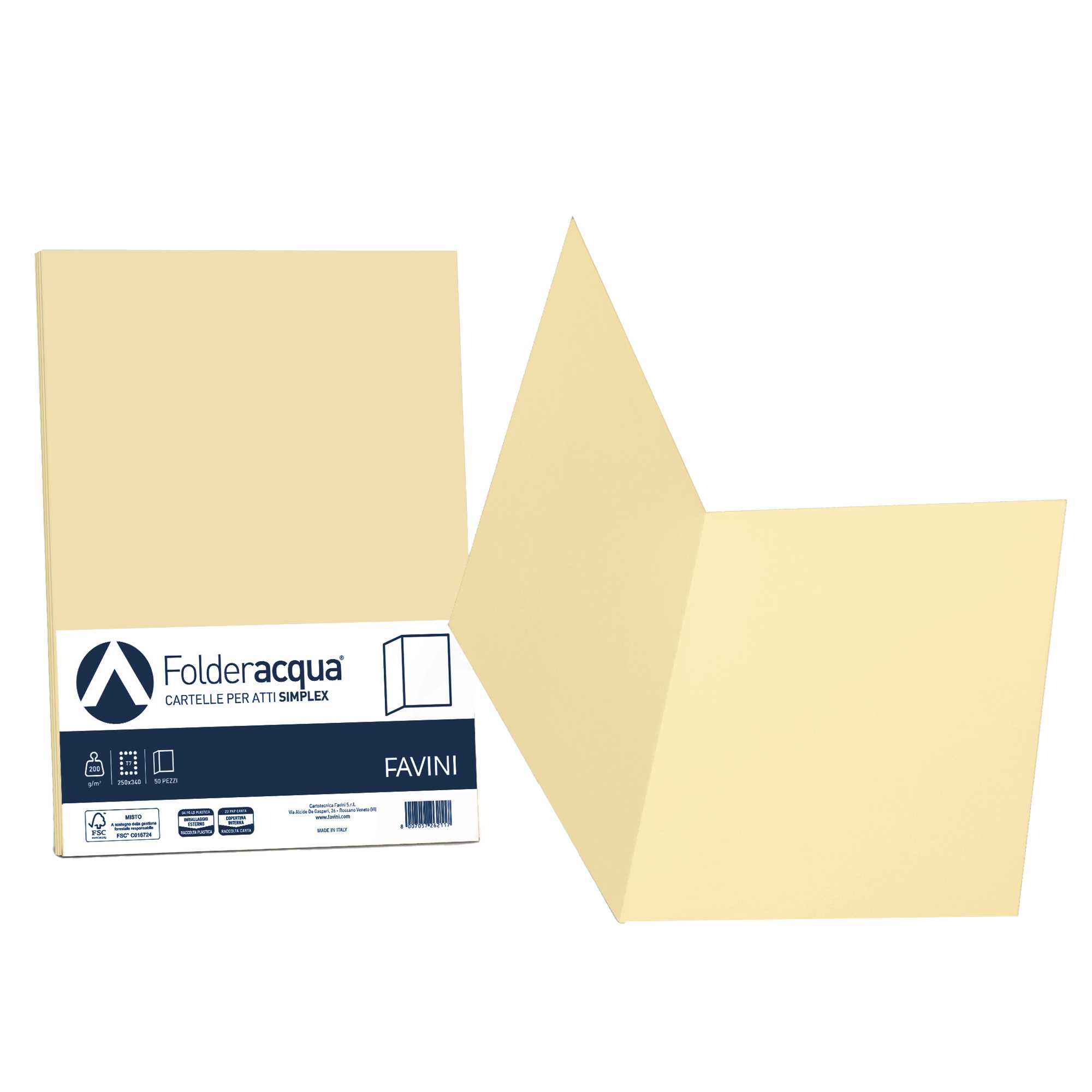 50 cartelline semplici ACQUA 200gr 25x34cm camoscio FAVINI