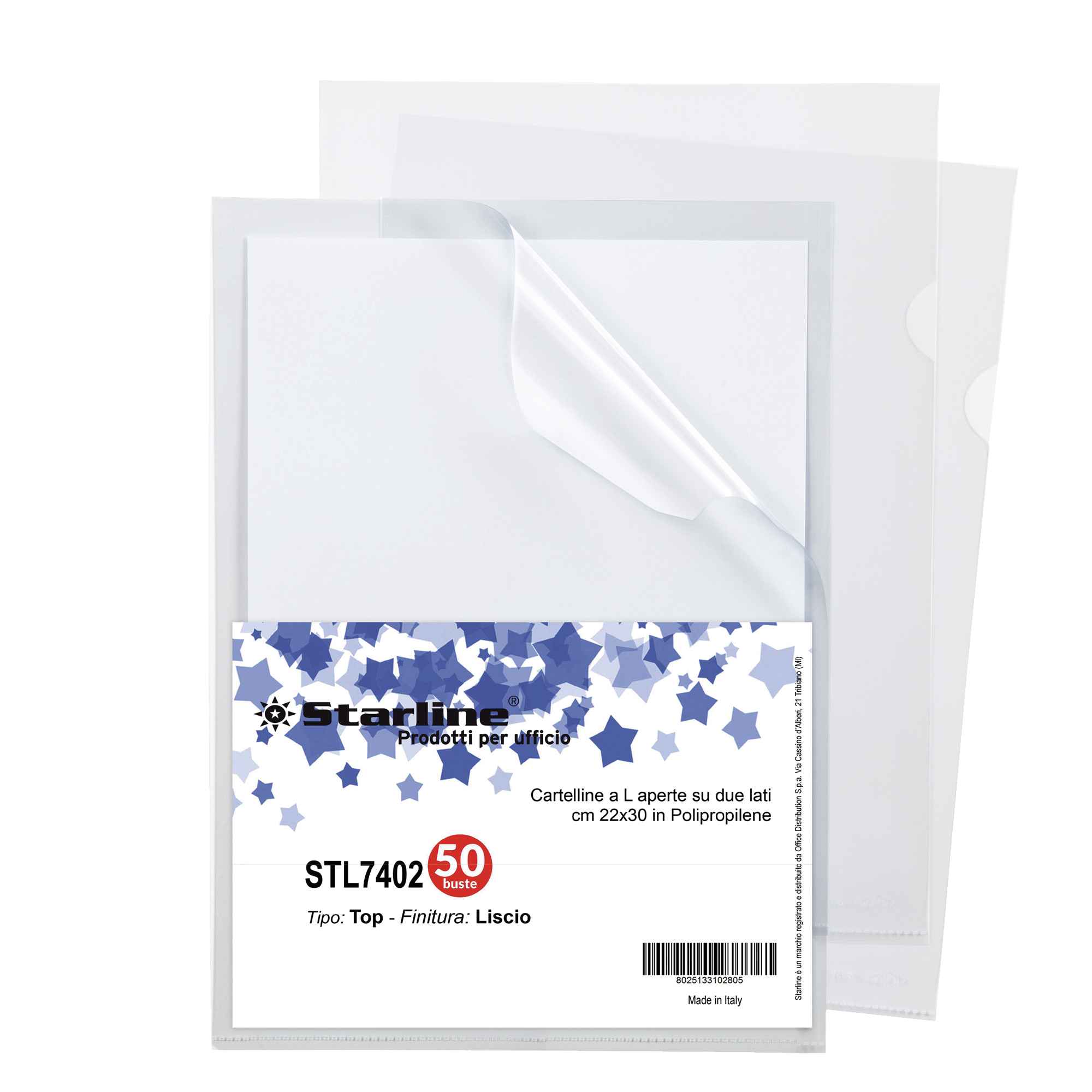 CARTELLINE A L STARLINE REALIZZATE IN POLIPROPILENE TRASPARENTE FINITURA LISCIO. FORMATO UTILE 22X30CM.