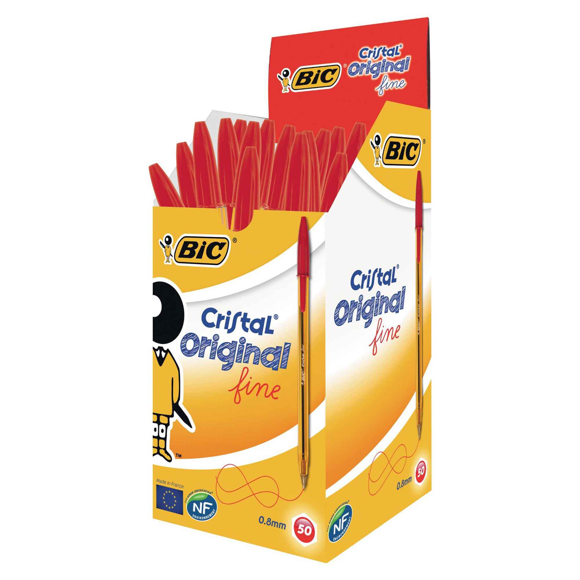 Scatola 50 penna sfera CRISTAL® fine 0,8mm rosso BIC®
