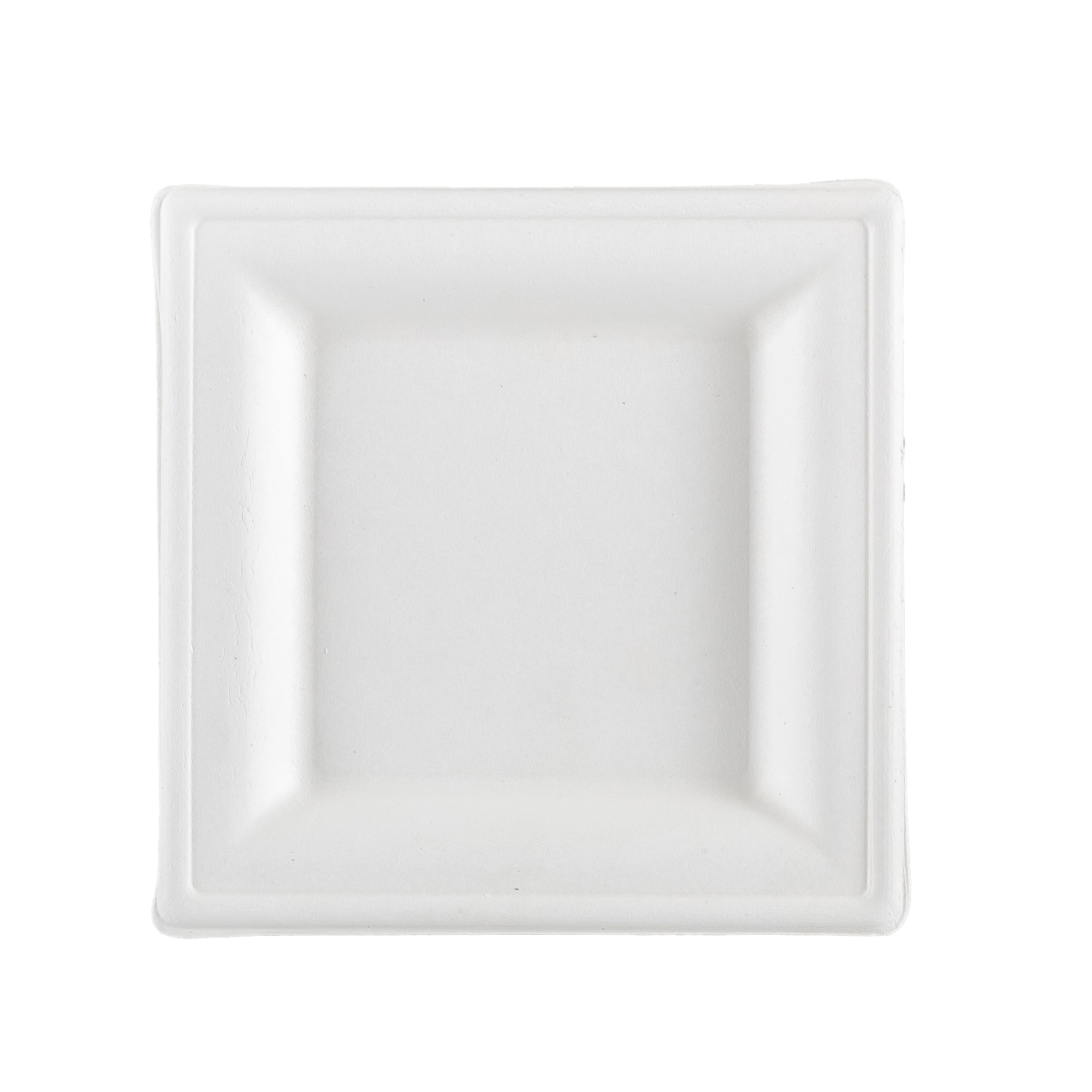 50 Piatti quadrati monouso in canna da zucchero 16x16cm bianco Signor Bio