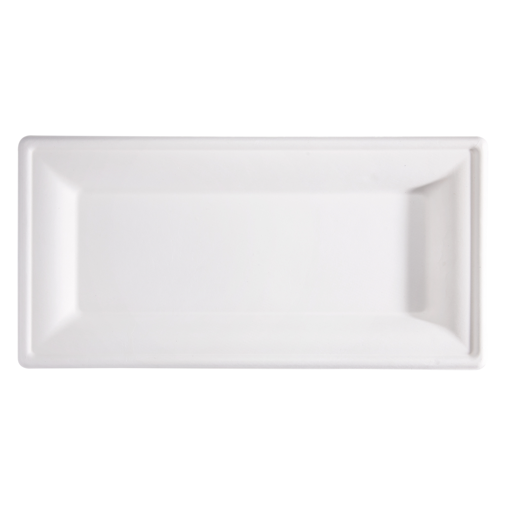 50 Piatti rettangolari monouso in canna da zucchero 26x13cm bianco Signor Bio