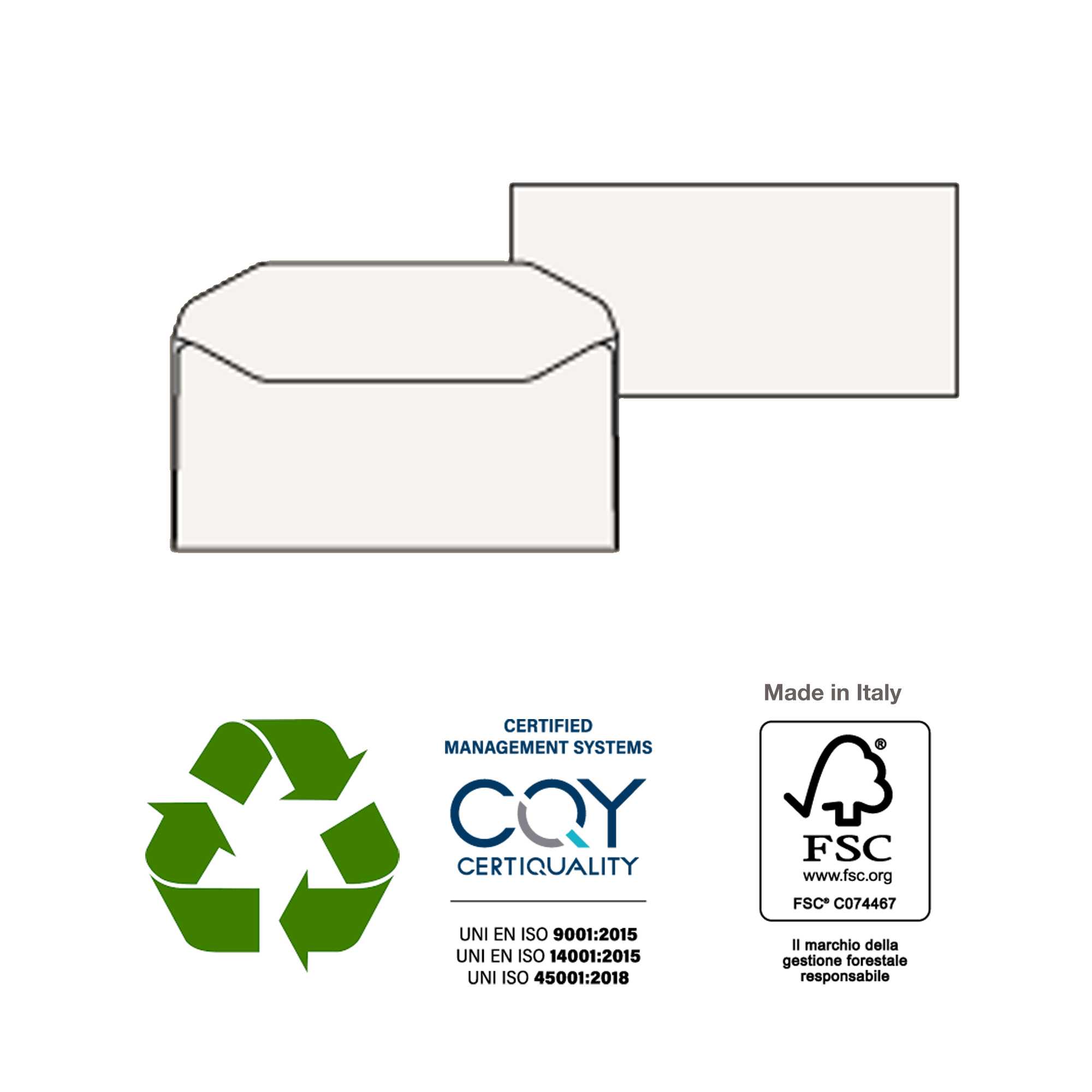 500 busteKAMI GOMMATE bianca carta riciclataFSC®s/finestra 110x230mm 100gr Pigna