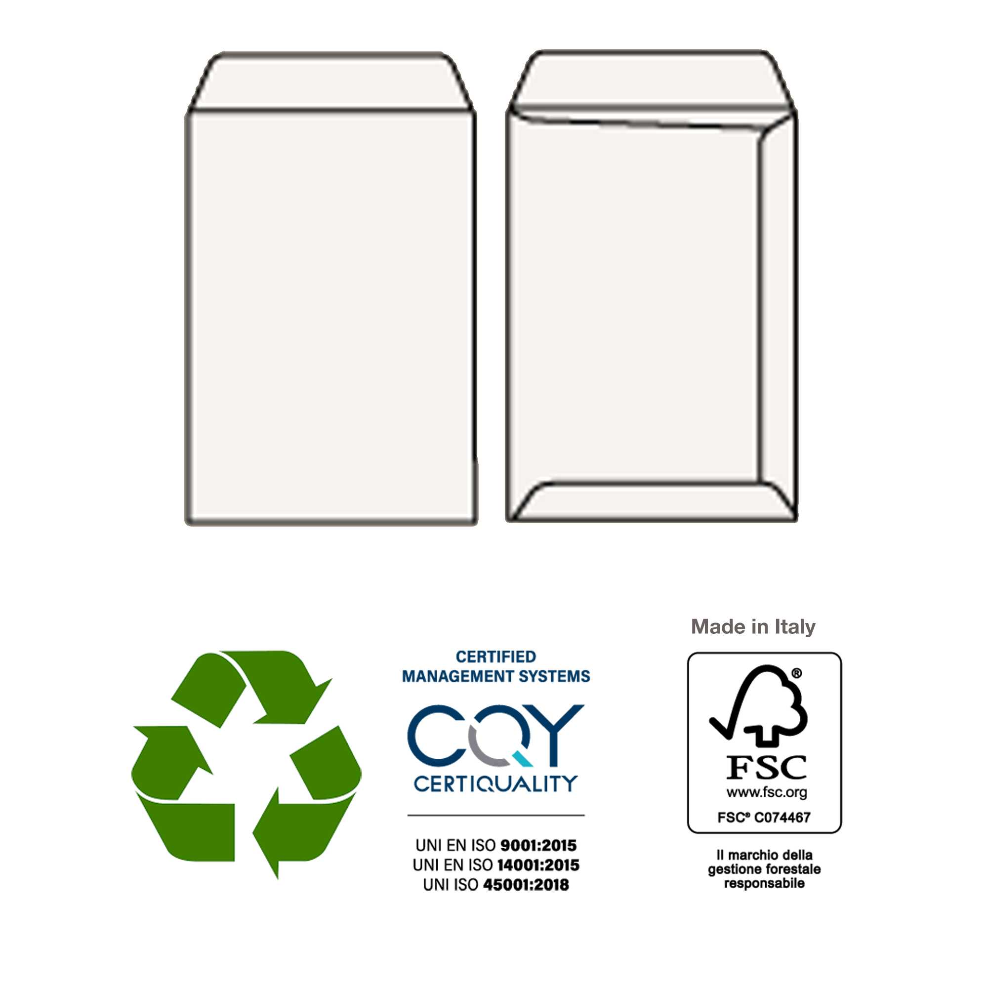 500 buste sacco KAMI STRIP bianca carta riciclata FSC® 162x229mm 100gr Pigna