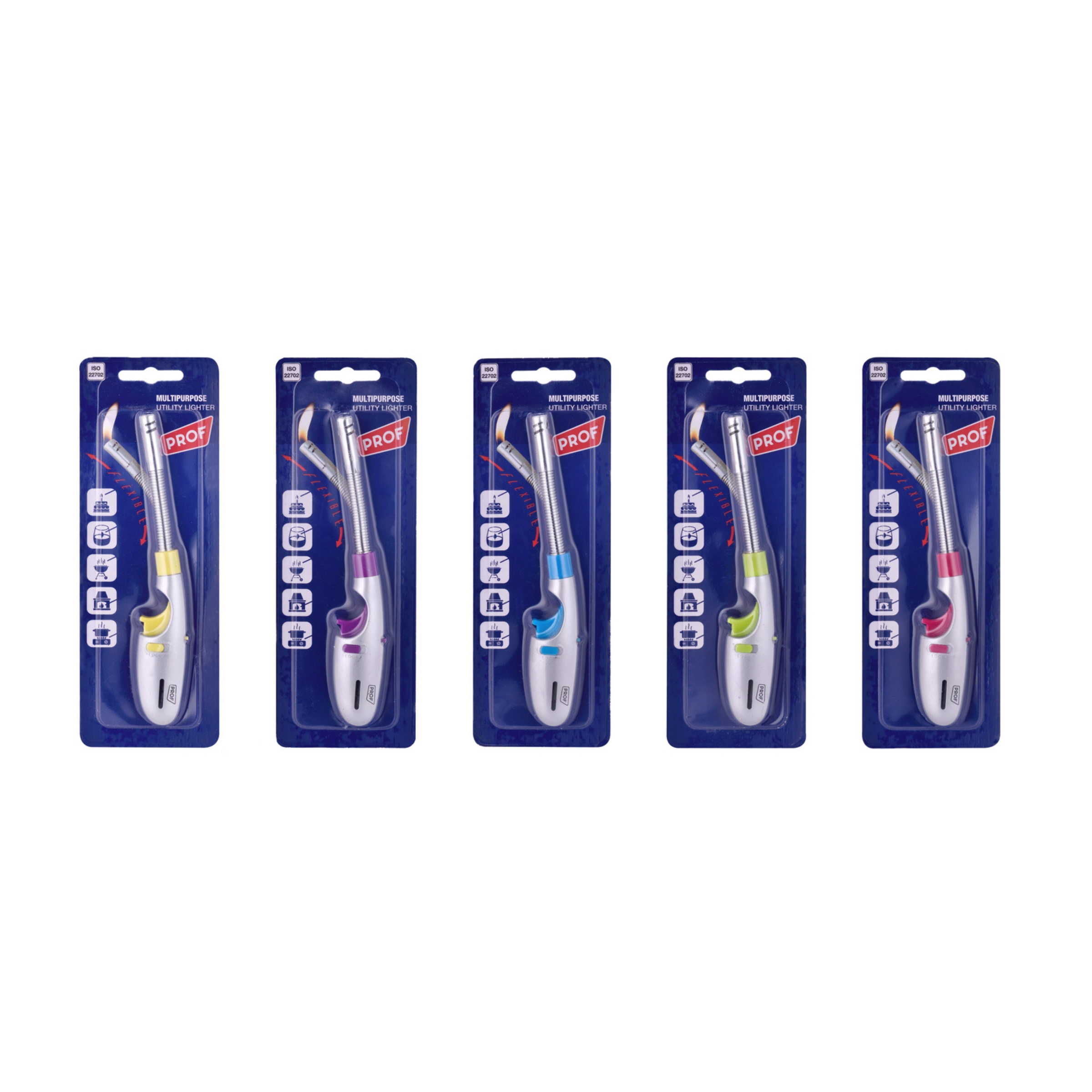 L'accendigas Prof Mini Shark Flex Silver-Color Piezo Ricaricabile è un accessorio versatile e indispensabile per accendere facilmente e in sicurezza fornelli, barbecue, caminetti e molto altro. Con il suo design innovativo e funzionale, rende le operazioni di accensione semplici e rapide.• Testa Flessibile: La testa flessibile dell'accendigas consente di raggiungere facilmente anche i punti più difficili, garantendo un'accensione sicura e precisa in ogni situazione.• Sistema Piezoelettrico: Dotato di un sistema di accensione piezoelettrica, l'accendigas offre un'accensione affidabile senza bisogno di batterie, rendendolo sempre pronto all'uso.• Ricaricabile: Questo accendigas è ricaricabile, permettendo di ridurre i rifiuti e di risparmiare nel lungo periodo. Un'opzione ecologica e conveniente per l'uso quotidiano.• Design Ergonomico: Il design ergonomico e il rivestimento antiscivolo assicurano una presa confortevole e sicura, facilitando l'utilizzo anche per periodi prolungati.• Sicurezza Integrata: L'accendigas è dotato di una protezione di sicurezza che impedisce l'accensione accidentale, garantendo un utilizzo sicuro in ogni momento.• Colori Assortiti: Disponibile in una gamma di colori vivaci, l'accendigas non è solo funzionale ma anche esteticamente piacevole, adattandosi a qualsiasi stile di cucina.L'accendigas Prof Mini Shark Flex Silver-Color Piezo Ricaricabile è la scelta ideale per chi cerca praticità, sicurezza e sostenibilità in un unico prodotto. Perfetto per uso domestico e professionale, rappresenta un'aggiunta indispensabile a qualsiasi cucina.