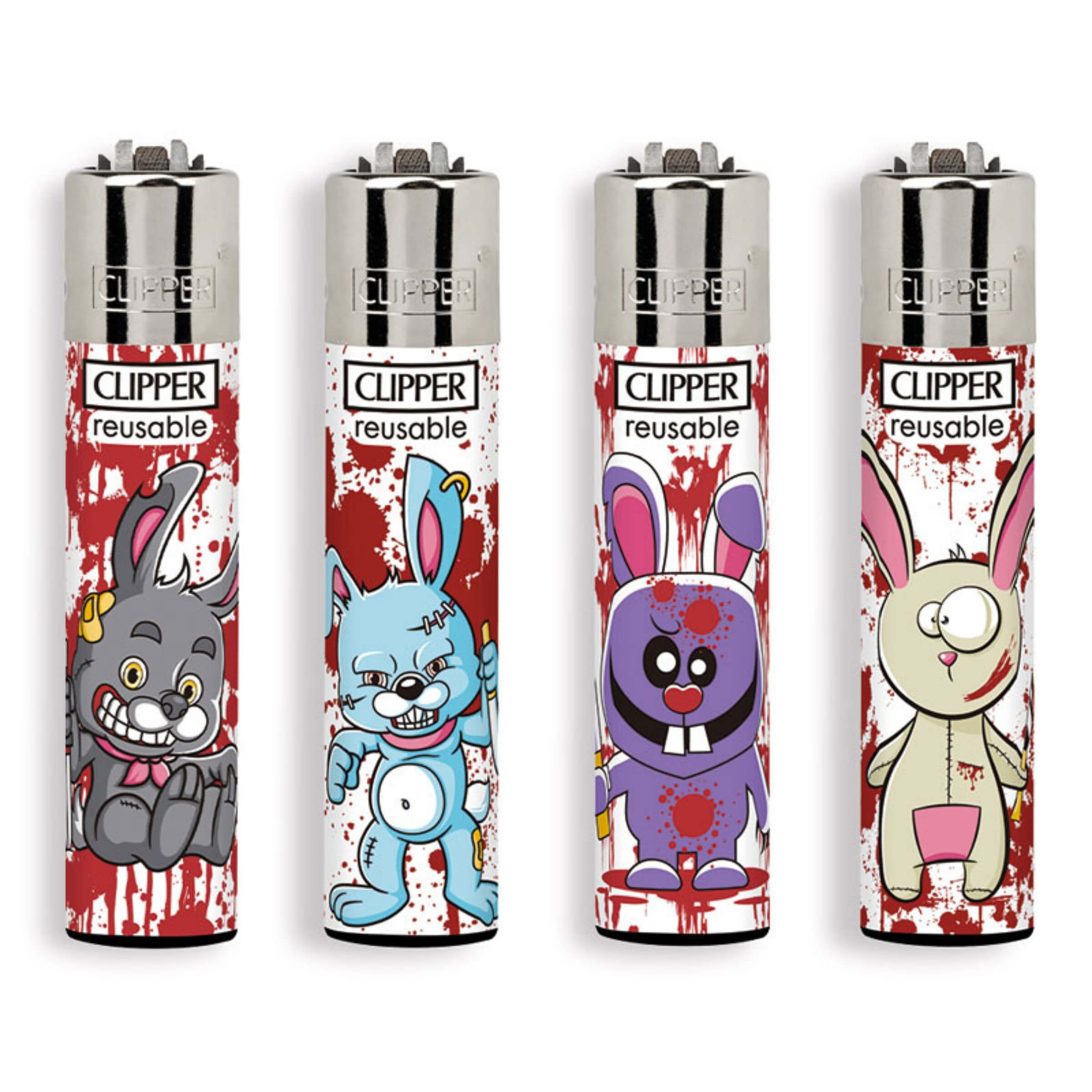 Il contrasto tra il tenero e il grottesco prende vita in questa sorprendente collezione Clipper Funny Bunnies, dove il mondo dei coniglietti si trasforma in un universo spiazzante, ironico e visivamente impattante. Ogni accendino della serie presenta un personaggio diverso, reinterpretato con grafiche caricaturali e uno stile che mescola il cartoon con elementi horror-pop: sguardi folli, cuciture a vista, schizzi di vernice rossa e pose fuori dagli schemi. Il risultato è una linea provocatoria, perfetta per chi cerca uno stile forte, riconoscibile e fuori dagli standard. Le illustrazioni sono applicate con stampa diretta, che valorizza i colori e garantisce una finitura resistente all'uso quotidiano.Ogni accendino è realizzato in formato Clipper Large, con una dimensione di circa 7.5 cm in altezza, pensata per offrire una presa ergonomica e una maggiore autonomia di utilizzo. La collezione viene fornita in un’esposizione completa da 48 pezzi assortiti, pronta per il banco vendita. Le grafiche sono suddivise in soggetti stilisticamente coerenti ma differenti tra loro, creando una varietà che stimola la curiosità anche dei clienti più esigenti.• Personaggi a tema cartoon horror: I protagonisti sono coniglietti in stile fumettistico rivisitati in chiave dark, con dettagli che evocano cuciture, espressioni disturbate e ironia grafica, su fondi con effetto spruzzo.• Formato Clipper Large: L’accendino misura circa 7.5 centimetri in altezza, con corpo cilindrico più ampio e maggiore capacità rispetto ai modelli standard.• Finitura con stampa diretta: Le illustrazioni sono stampate direttamente sulla superficie dell’accendino per garantire brillantezza e durata anche con un uso intensivo.• Fiamma inclinabile e sistema ricaricabile: Ogni accendino è dotato del classico meccanismo Clipper, che permette di regolare la fiamma inclinando il corpo e di effettuare facilmente la ricarica del gas butano.• Pietrina sostituibile: L’accendino include un sistema interno che consente la sostituzione manuale della pietrina, allungando la durata d’uso e riducendo l’impatto ambientale.• Fornitura assortita da 48 pezzi: L’espositore include 48 accendini differenti tra loro per grafica e soggetto, confezionati in formato pronto per la vendita al dettaglio.• Prodotto conforme: Tutti gli accendini Clipper rispettano le normative internazionali ISO 9994 e EN 13869 per garantire sicurezza, affidabilità e performance nel tempo.Questa collezione è pensata per chi ama oggetti fuori dal comune, capaci di raccontare una storia visiva provocatoria e fuori dagli schemi. Funny Bunnies è una linea che sfida la normalità con il sorriso irriverente dei suoi protagonisti, trasformando ogni accendino in un piccolo pezzo da collezione dal carattere audace e anticonformista.