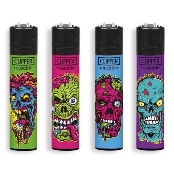 Un’esplosione di colore, irriverenza e stile underground prende forma nella collezione Clipper Cool Brains, una linea di accendini in formato Large che trasforma il mondo degli zombie in un’espressione grafica provocatoria e ironica. Ogni accendino raffigura un teschio o una creatura grottesca in stile cartoon horror, ma con colori fluo, linee dinamiche e una composizione visiva che richiama la street art e il mondo della grafica underground. Il tono visivo è forte, diretto e volutamente eccessivo, pensato per chi ama collezionare oggetti fuori dagli schemi o semplicemente desidera uno stile inconfondibile anche negli oggetti quotidiani. Le grafiche, applicate tramite stampa diretta ad alta definizione, sono vivide e resistenti all’usura.