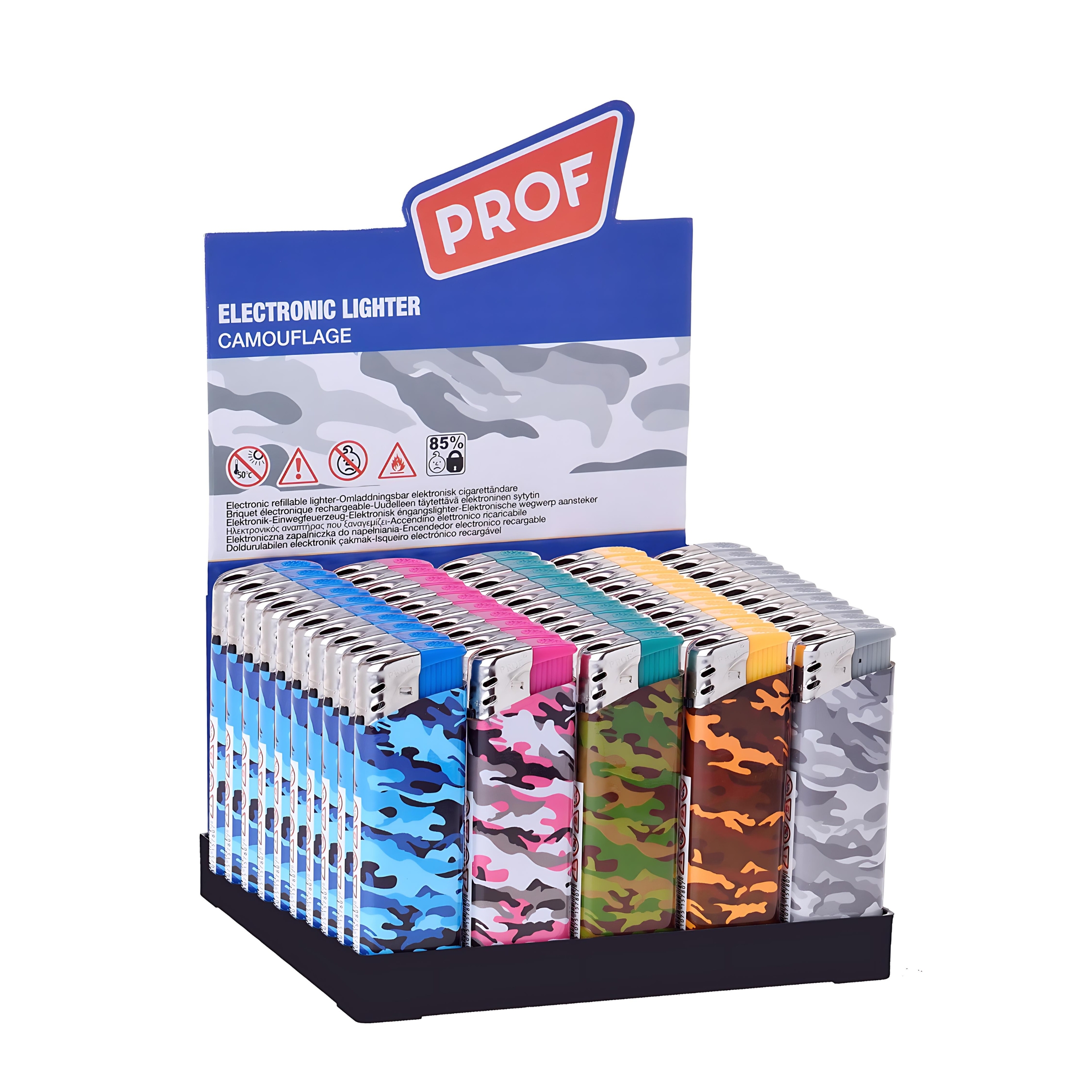 Gli accendini PROF Camouflage combinano funzionalità e design moderno, offrendo un prodotto di alta qualità ideale per uso personale o per la vendita al dettaglio. Con la loro confezione pratica e i motivi camouflage, questi accendini sono un'ottima scelta per chi cerca un accessorio pratico e stiloso.