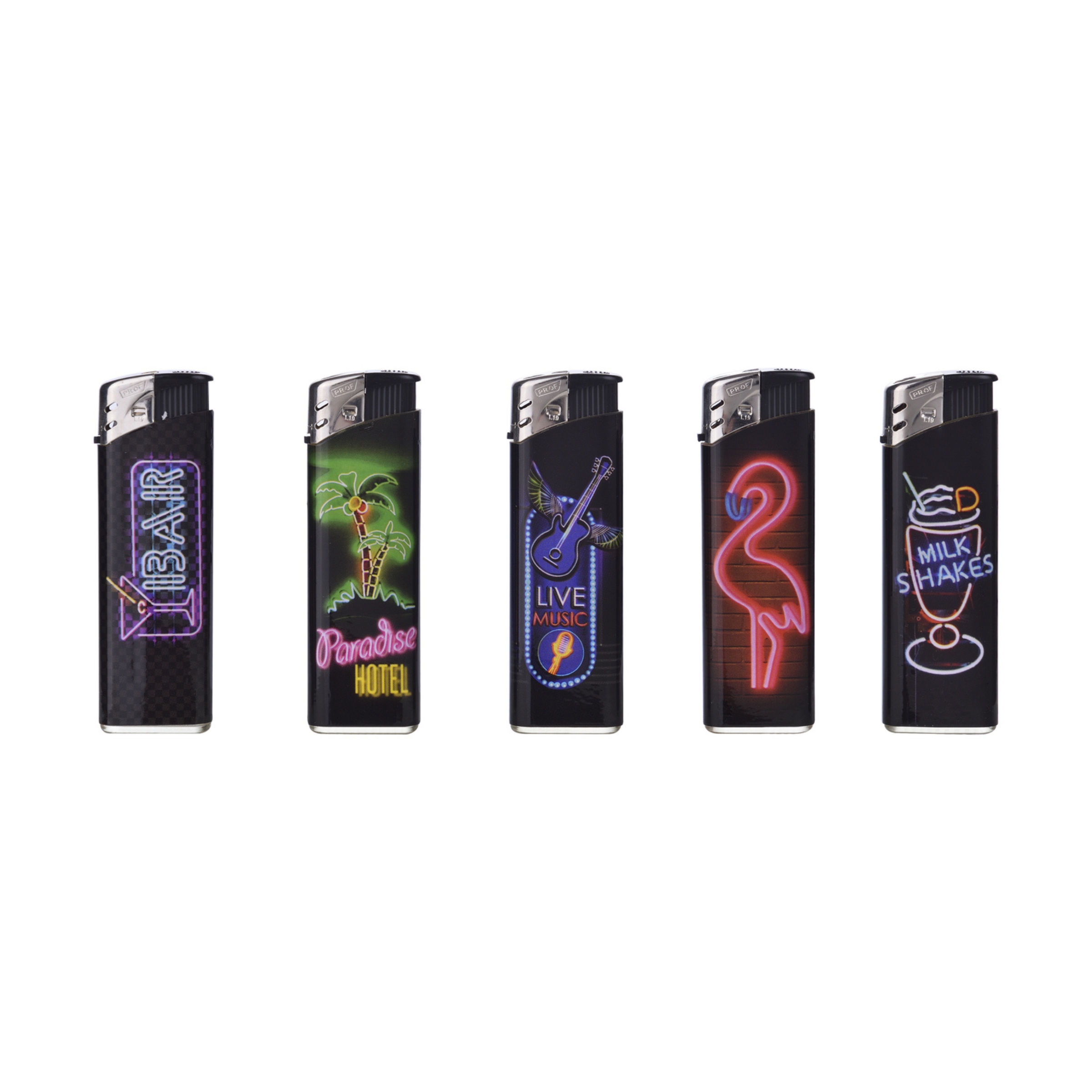 Gli accendini PROF Neons offrono un design moderno con motivi ispirati alle luci al neon, combinando funzionalità e stile in un formato compatto. Perfetti per l'uso quotidiano, questi accendini sono ideali per chi cerca un prodotto affidabile e esteticamente piacevole.• Design Neon: Ogni accendino presenta dettagliati motivi neon, aggiungendo un tocco di modernità e stile urbano. I colori vivaci e le intricate decorazioni rendono questi accendini unici e facilmente riconoscibili.• Confezione da 50 Pezzi: Gli accendini sono venduti in una pratica confezione da 50 pezzi, ideale per la vendita al dettaglio o per garantire una scorta a lungo termine. L'espositore in cartone facilita l'organizzazione e l'esposizione nei punti vendita, rendendoli attraenti per i clienti.• Dimensioni Compatte: Con dimensioni di 8.17 cm di altezza, 2.47 cm di larghezza e 1.15 cm di spessore, gli accendini PROF sono facilmente trasportabili e comodi da utilizzare. La loro forma compatta li rende perfetti per essere riposti in tasca o in borsa.• Peso Leggero: Ogni accendino pesa solo 0.016 kg, rendendoli estremamente leggeri e facili da maneggiare. Il peso ridotto non compromette la robustezza e la qualità del prodotto.• Affidabilità e Sicurezza: Gli accendini PROF sono progettati per essere sicuri e affidabili, con un meccanismo di accensione che garantisce una fiamma costante. Sono conformi agli standard di sicurezza europei, garantendo un utilizzo sicuro per tutti.Gli accendini PROF Neons combinano funzionalità e design accattivante, offrendo un prodotto di alta qualità ideale per uso personale o per la vendita al dettaglio. Con la loro confezione pratica e i motivi vivaci, questi accendini sono un'ottima scelta per chi cerca un accessorio pratico e stiloso.