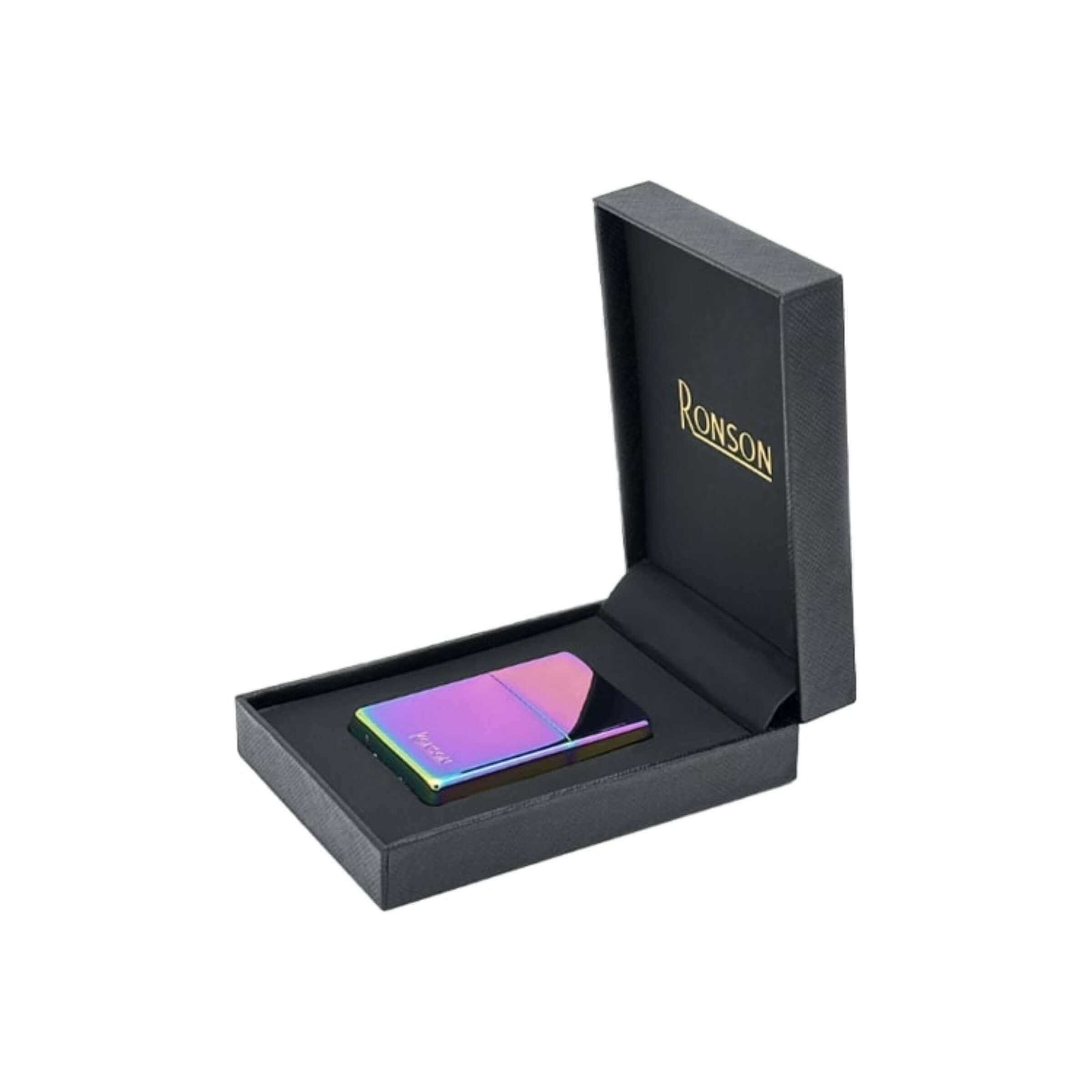 Un accessorio distintivo e raffinato, l'accendino Ronson Rainbow con finitura arcobaleno unisce stile e funzionalità in un design senza tempo. Grazie alla sua forma ergonomica e alla custodia in metallo resistente, è progettato per garantire un uso prolungato ed è amato dai collezionisti di tutto il mondo.• Accensione a Pietra Focaia: L'accendino è dotato di un sistema di accensione a pietra focaia, che assicura un'accensione rapida e affidabile, ideale per l'uso quotidiano.• Ricaricabile a Fluido: Realizzato per essere facilmente ricaricato con fluido, garantisce una lunga durata, mantenendo prestazioni elevate nel tempo.• Design Unico e Moderno: La finitura arcobaleno dona all’accendino un look audace e contemporaneo, perfetto per chi ama distinguersi. È disponibile anche in altre eleganti finiture, come oro lucido, ghiaccio blu e cromo spazzolato, per adattarsi a ogni stile.• Fiamma Dolce e Sicura: La fiamma dolce permette un'accensione sicura e controllata, garantendo un'esperienza di utilizzo piacevole e sofisticata.• Confezione Regalo in Carbonio: L'accendino è presentato in un’elegante scatola regalo in carbonio, ideale per doni esclusivi e di alto valore.L'accendino Ronson Rainbow è pensato per chi apprezza l'originalità e la qualità, un accessorio dal design vivace che diventa simbolo di stile e affidabilità in ogni occasione.