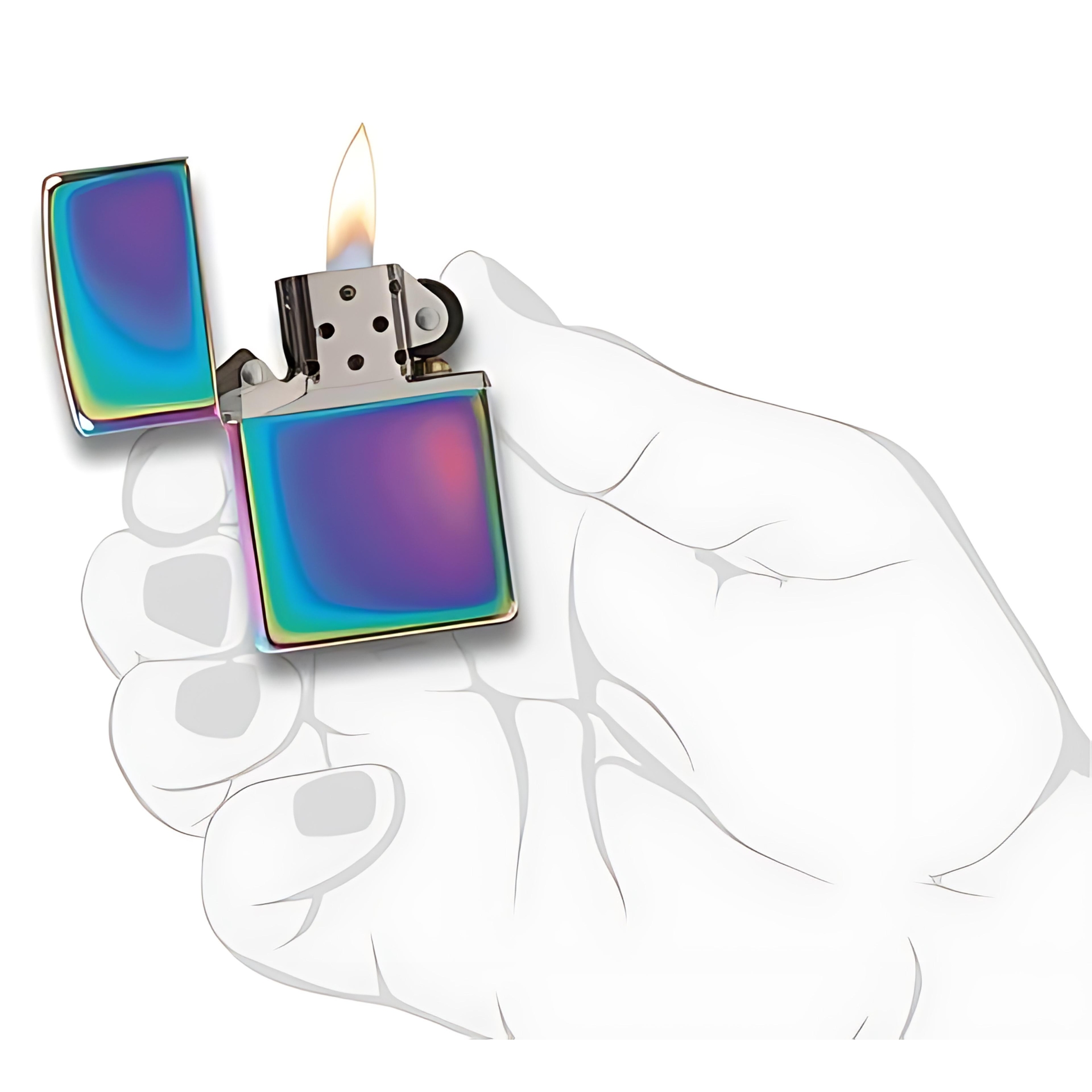 Questo classico accendino cromato ha un rivestimento micro sottile e resistente ai graffi, creando uno scintillante accendino multicolore arcobaleno. Viene confezionato in una scatola regalo, pronto per essere donato o aggiunto alla tua collezione. Per prestazioni ottimali, utilizza il fluido di ricarica originale per accendini Zippo.