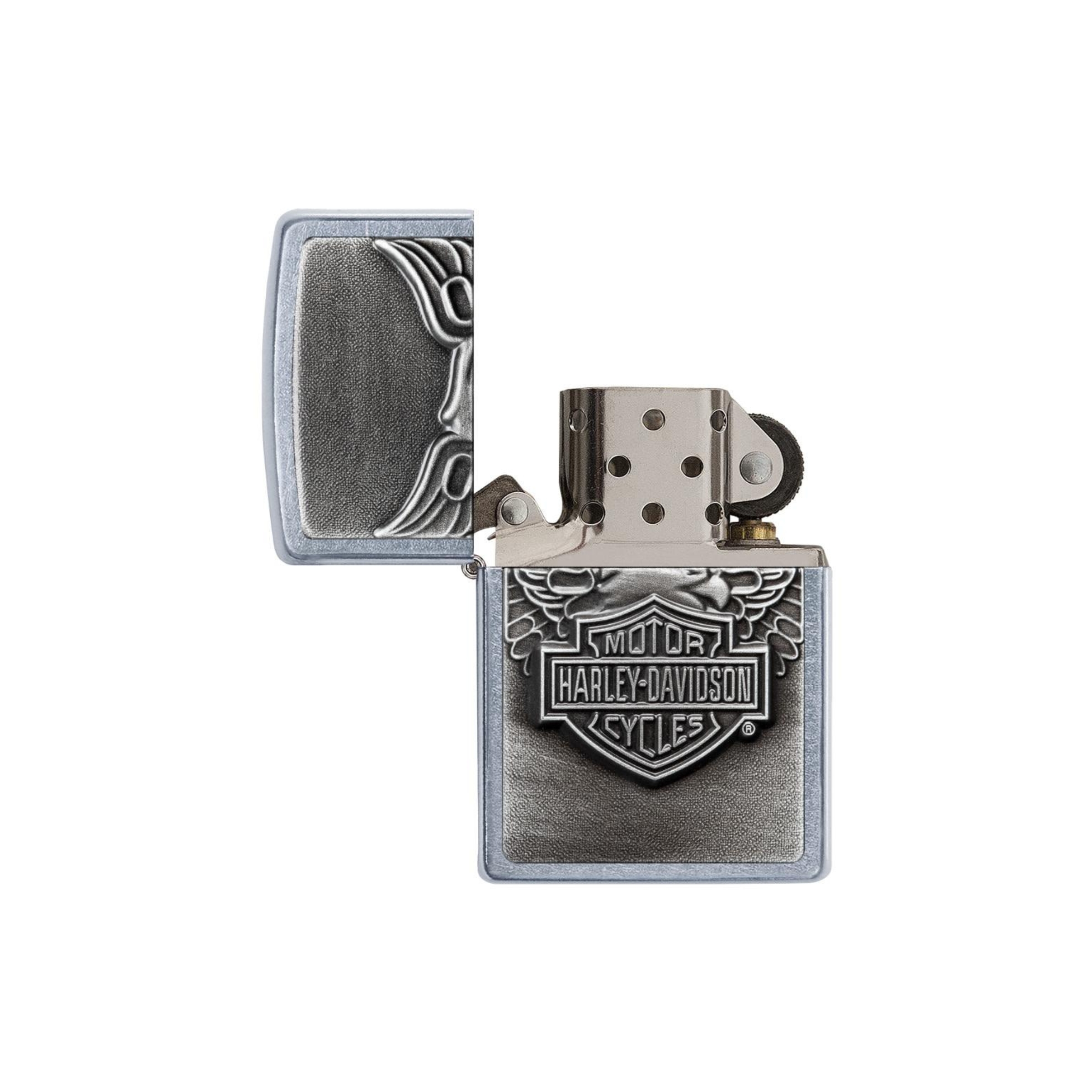 Questo accendino Street Chrome Harley-Davidson è caratterizzato da un emblema tridimensionale raffigurante il classico scudo Harley-Davidson con ali d'aquila, simbolo di libertà e potenza. Viene fornito in una confezione regalo, pronto per essere donato o aggiunto alla tua collezione. Per prestazioni ottimali, riempilo con il fluido di ricarica originale per accendini Zippo.• Design Antivento: L'accendino antivento originale Zippo con il caratteristico "click" Zippo garantisce un'accensione affidabile in qualsiasi condizione.• Costruzione in Metallo: Realizzato interamente in metallo, l'accendino presenta un design robusto che funziona praticamente ovunque.• Ricaricabile: L'accendino è ricaricabile, garantendo un utilizzo duraturo. Per prestazioni ottimali, si consiglia di utilizzare fluido, pietrine e stoppini originali Zippo. Il liquido di ricarica è venduto separatamente.L'accendino Zippo Harley-Davidson Eagle Shield è perfetto per chi cerca un accessorio funzionale e di stile. Con il suo design robusto e il classico logo Harley-Davidson, è un regalo ideale per ogni appassionato di motociclette.