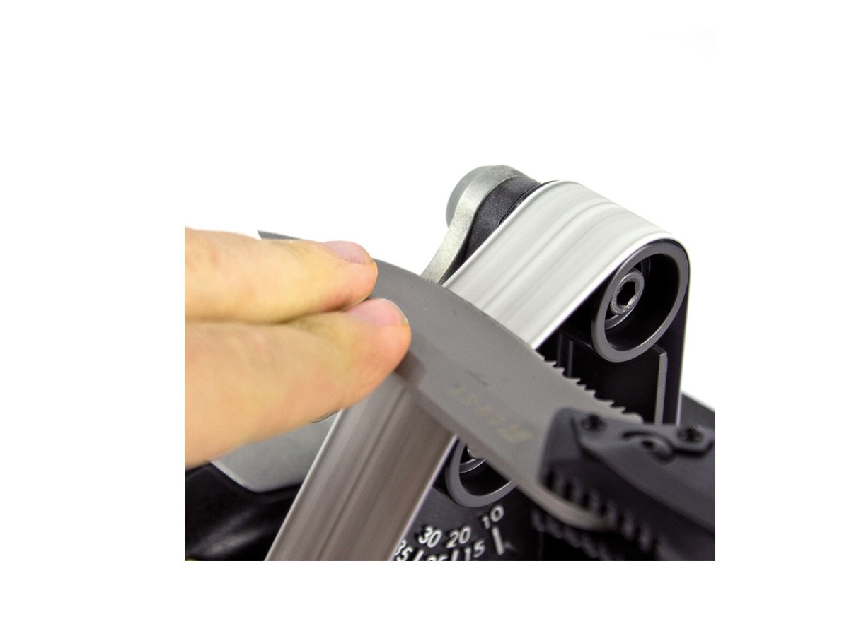 Il supporto è stato disegnato per la sagomatura del coltello, l'affilatura e e varie rifiniture. Usa nastri abrasivi 1" x 18" in una vasta gamma di grana ed una guida di precisione regolabile da 10° a 35° con incrementi di 1° . La velocità è regolabile da 1200-2800 SFM (square feet per minute).