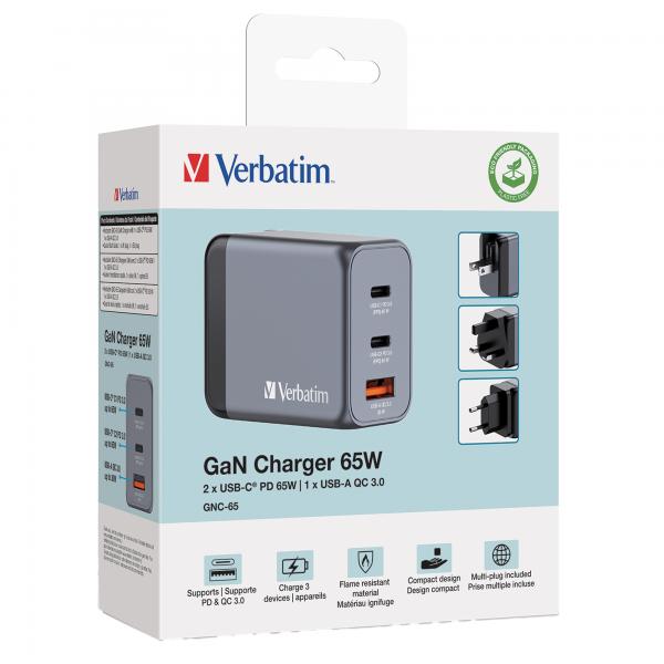 Adattatore da viaggio GNC-65- 2x USB-C PD 65W, 1x USB-A QC 3.0-65W_Verbatim