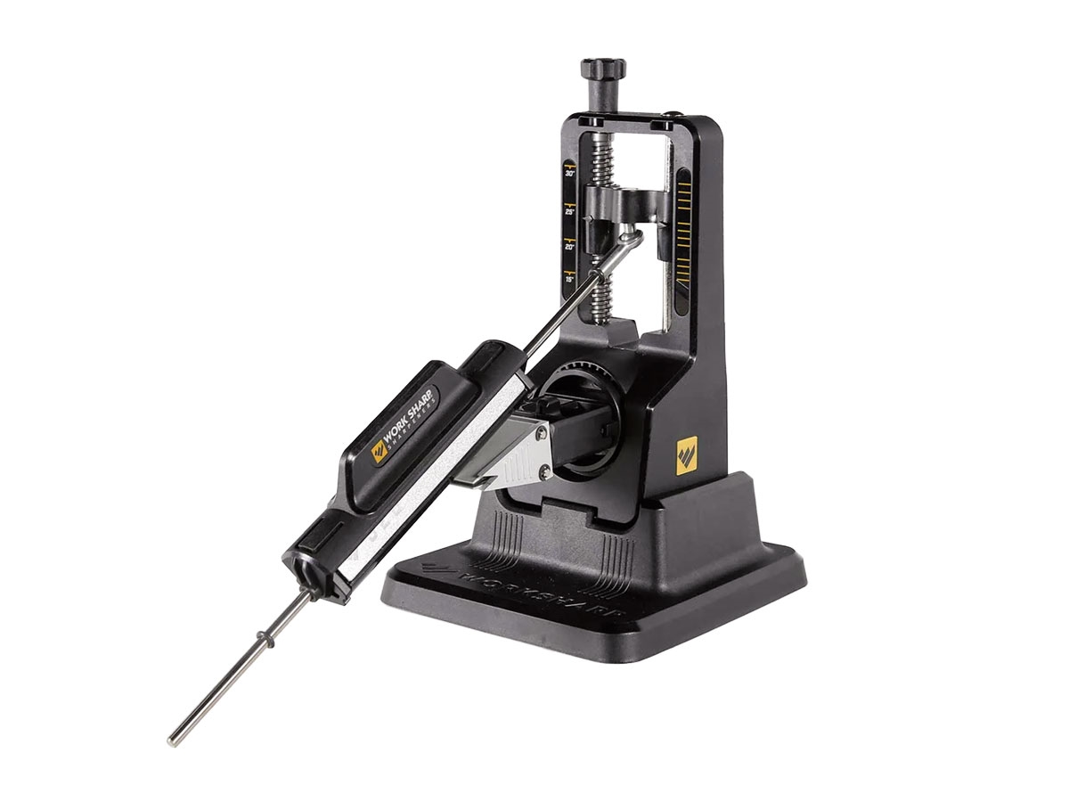 Il Work Sharp Precision Adjust Knife Sharpener è un sistema di affilatura per coltelli regolabile in angolazione e con tre grane abrasive. La base (sharpening base) fornisce una piattaforma stabile per l'affilatura da banco ed il morsetto (blade clamp collet) dal design innovativo fissa il coltello in modo rapido e sicuro. L'asta (Tri-Brasive Rod) ha sui tre lati una piastra diamantate a grana grossa 320 ed una a grana fine 600 (per ripristinare rapidamente il filo del coltello) ed una pietra in ceramica a grana fine (per affinare il filo). L'angolo di affilatura può essere facilmente regolato da 15° a 30° con incrementi di 1°.