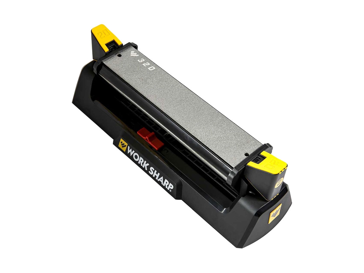 L'affilatore Benchstone è un sistema di affilatura abrasiva su 3 lati con guida angolare. Le piastre diamantate a grana media (320) e grana fine (600) ripristinano rapidamente il filo, mentre la pietra ceramica a grana fine crea un bordo incredibilmente acuto su qualsiasi coltello. Gli abrasivi sono sostituibili dall'utente. L'innovativo sistema Pivot-Response consente all'abrasivo di seguire la curva della lama, rendendo l'affilatura manuale più veloce, più facile e più precisa. Le guide di affilatura sono intercambiabili da 20 ° o 25 ° e sono opzionali da usare. Affila coltelli tascabili e da outdoor di tutti i tipi e può essere utilizzato anche su coltelli da cucina. La funzione Pivot-Response può essere bloccata per fornire una superficie di affilatura rigida per un'ampia gamma di applicazioni di affilatura di coltelli e utensili. I piedini antiscivolo garantiscono un processo sicuro e stabile.