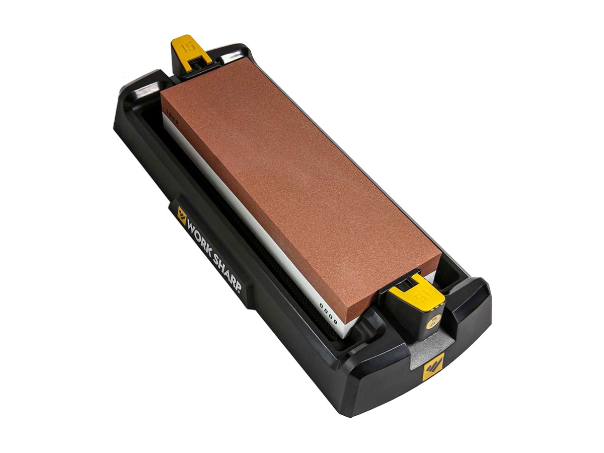 L'affilatore da banco Whetstone è un sistema di affilatura angolare con pietra a grana doppia per coltelli ed utensili a spigolo vivo. Si utilizza la pietra a grana 1000 per affilare e ripristinare un bordo, quindi la pietra a grana 6000 per creare un filo estremamente affilato e una rifinitura. La pietra ad acqua è veloce, dura a lungo e crea una sorta di sospensione durante l'affilatura. La base offre una piattaforma stabile, grazie ai piedini antiscivolo, e permette di controllare l'acqua per poi pulire facilmente. Le guide angolari offrono la precisione nel mantenimento del filo e rendono la pulizia rapida e semplice. Le guide di affilatura sono intercambiabili da 15 ° o 17 ° e sono opzionali da usare. Si possono affilare coltelli da cucina di tutti i tipi e può essere utilizzato anche su coltelli tascabili e da filetto.