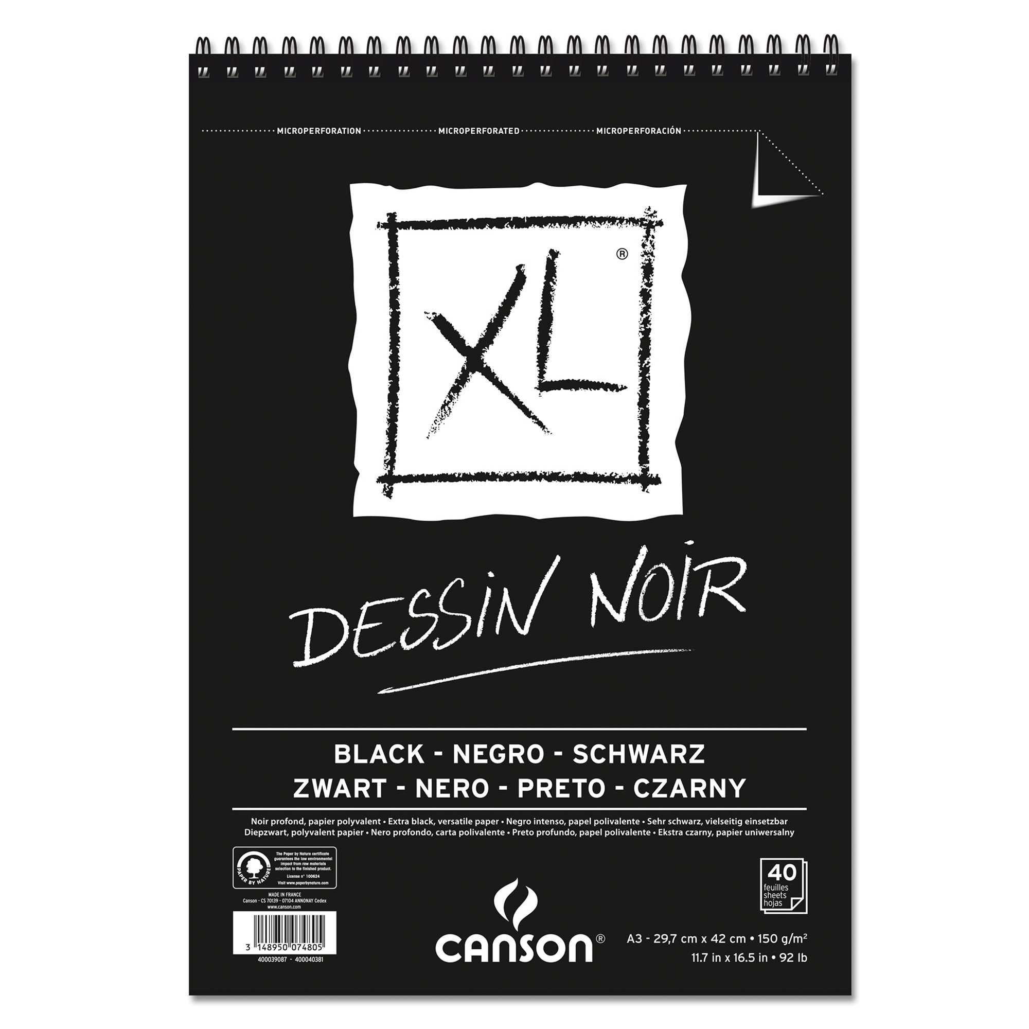 Album spiralato lato corto XL BLACK A3 40 fg. 150 gr. Canson Composto da 5